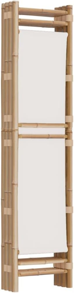 Folding 4-Panel Room Divider 63" Bamboo and Canvas,Bamboo Room Divider for Privacy and Style, Foldable Partition for Any Room, Cream White Furniture for Bedroom