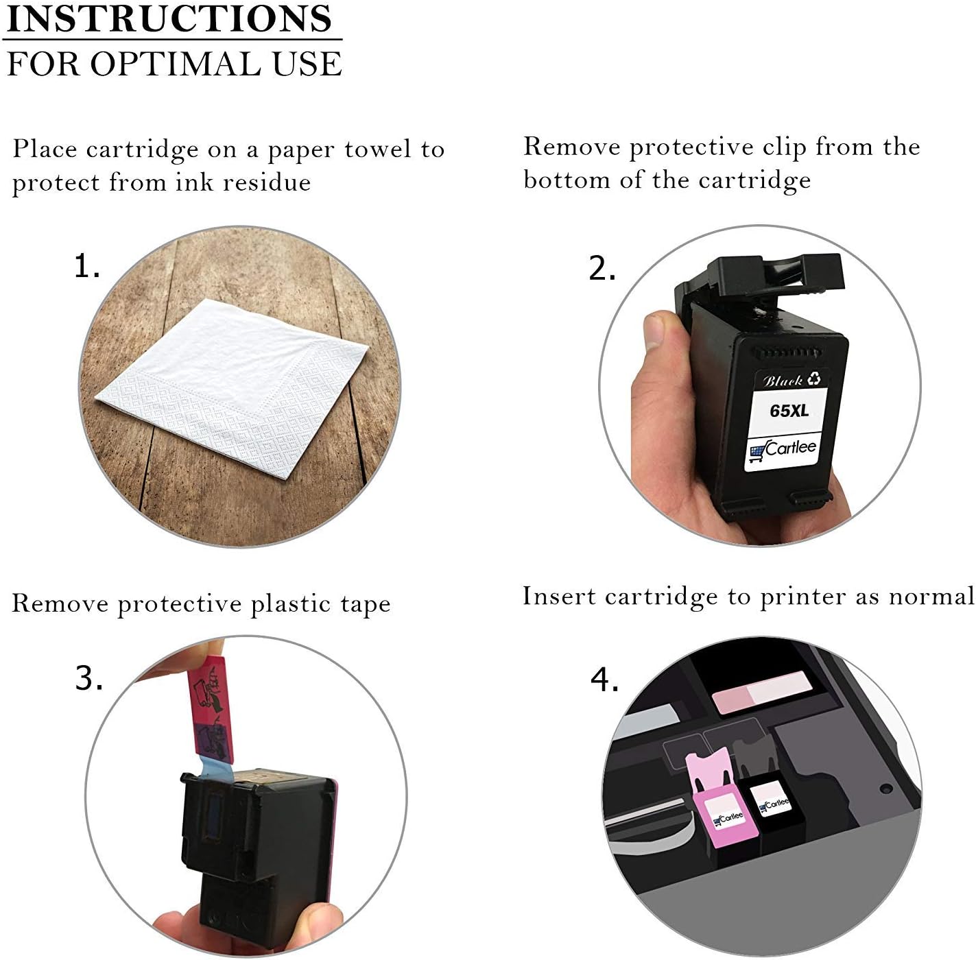Cartlee 4 Pack Remanufactured 65XL 65 XL High Yield Ink Cartridges for HP DeskJet 2600 2622 2635 2652 2655 3700 3720 3722 3752 3755 Envy 5000 5052 5055 AMP 100 Printer Series Black and Color Combo