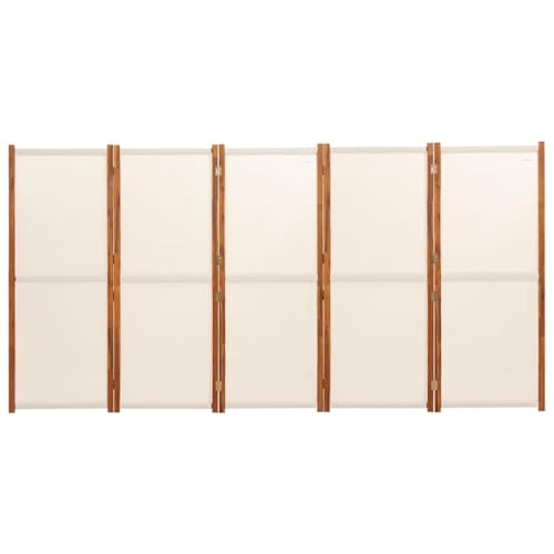 Bedroom Furniture 5-Panel Room Divider Cream White 137.8"x70.9",Acacia Wood Room Divider, Foldable Privacy Screen for Indoor and Outdoor Use