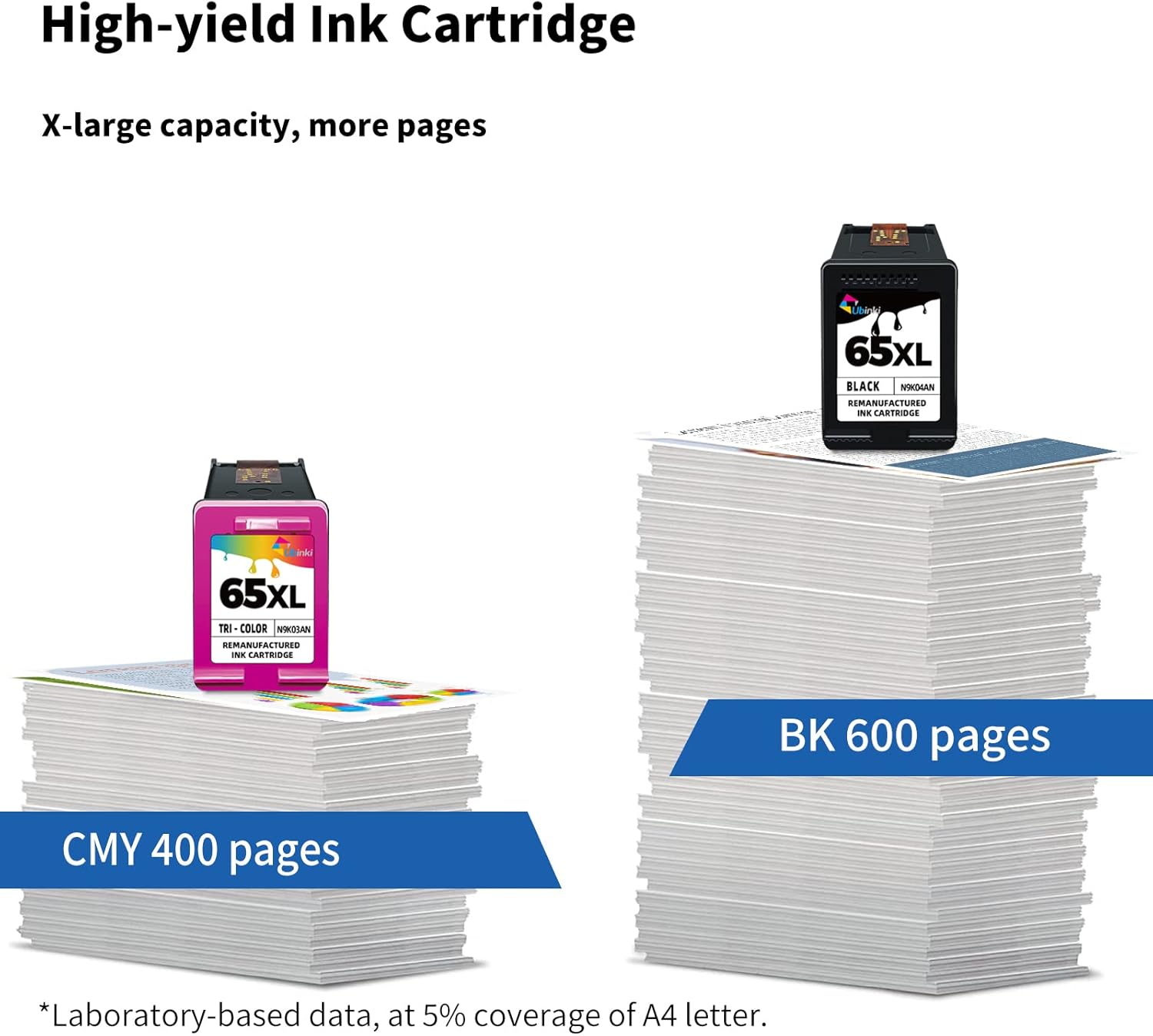 Remanufactured Ink Cartridge Replacement for HP 65XL 65 XL (Black and Color Combo, 3-Pack) HP65 XL HP65XL Ink for 5000 5055 3755 3700 3772 3722 2600 2622 3752 2652 2655 2640 5052 5010 Printer