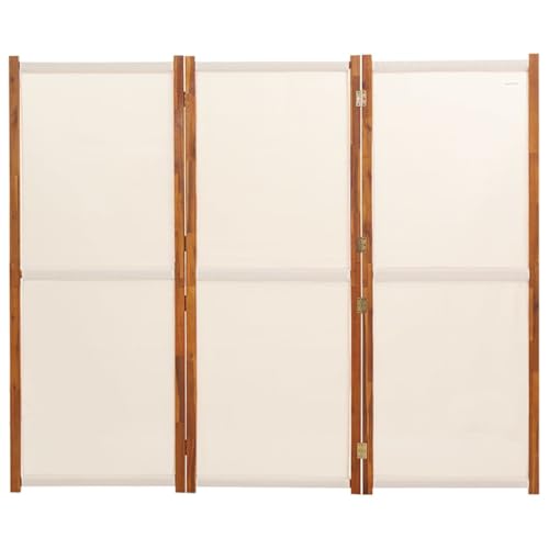Bedroom Furniture 3-Panel Room Divider Cream White 82.7"x70.9",Durable Room Divider for Privacy and Separation, Acacia Wood and Textilene Panel