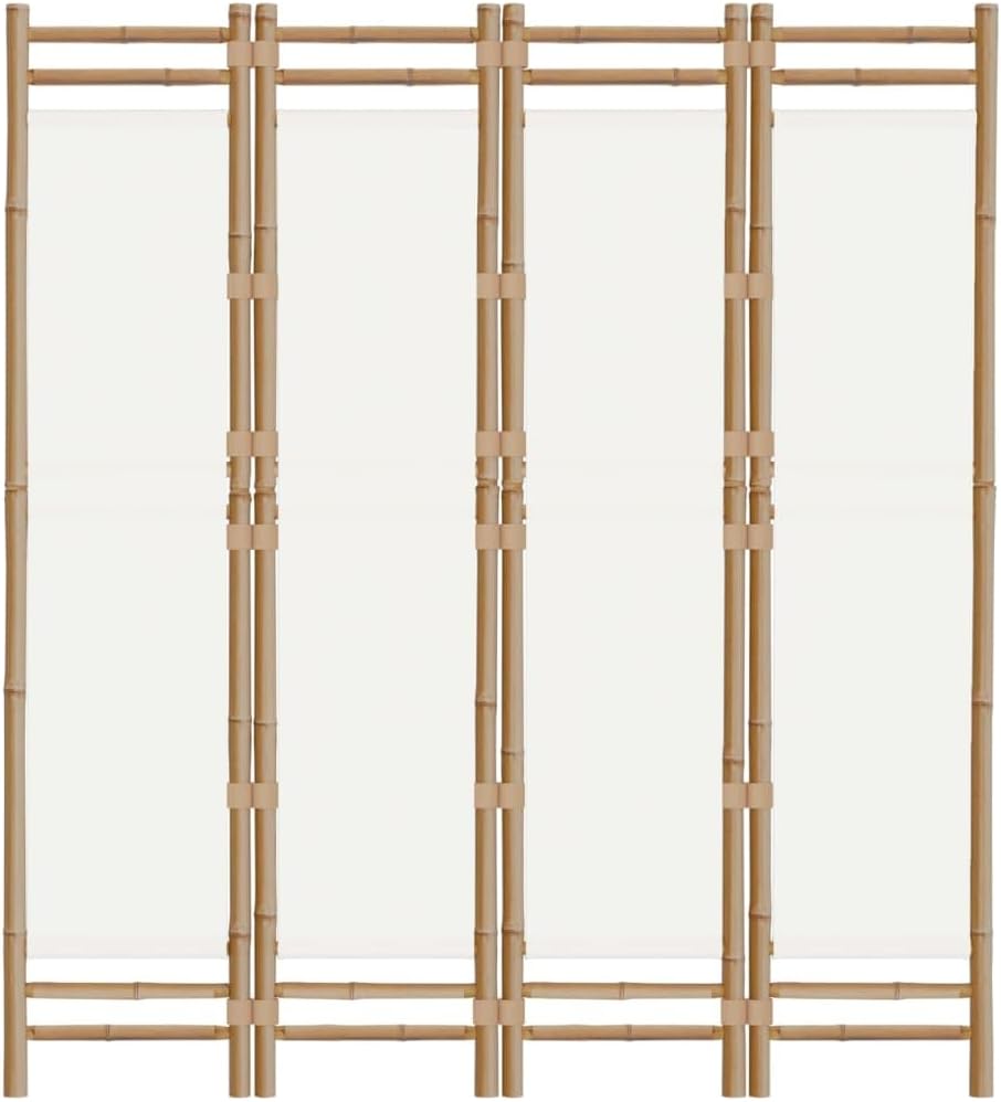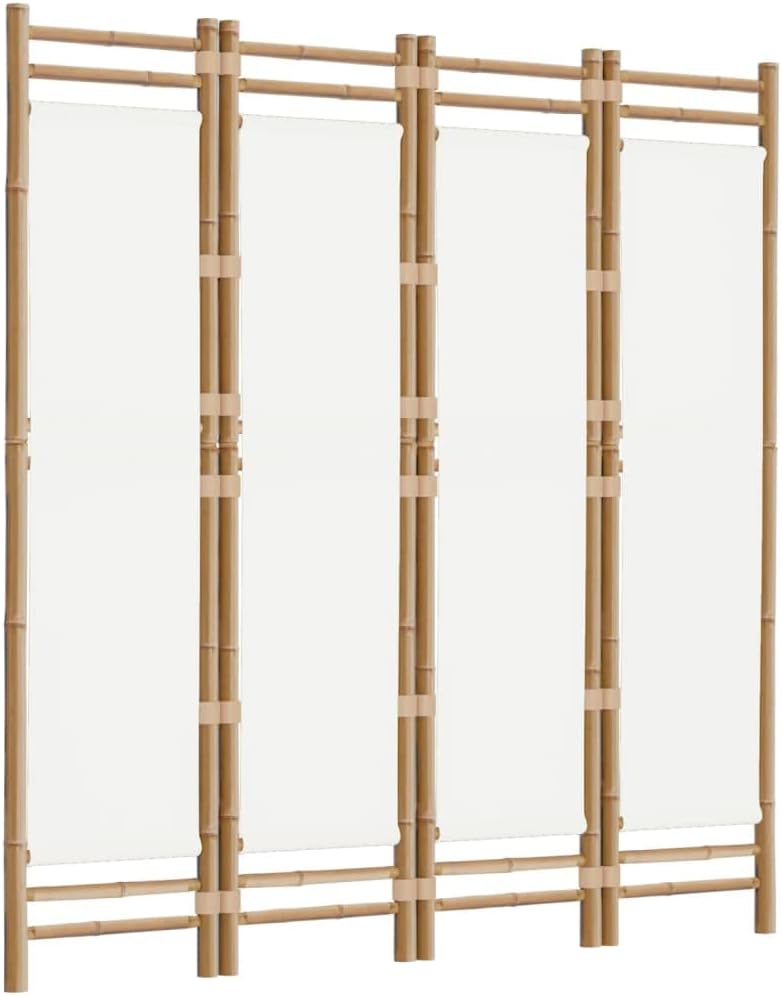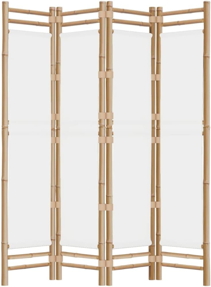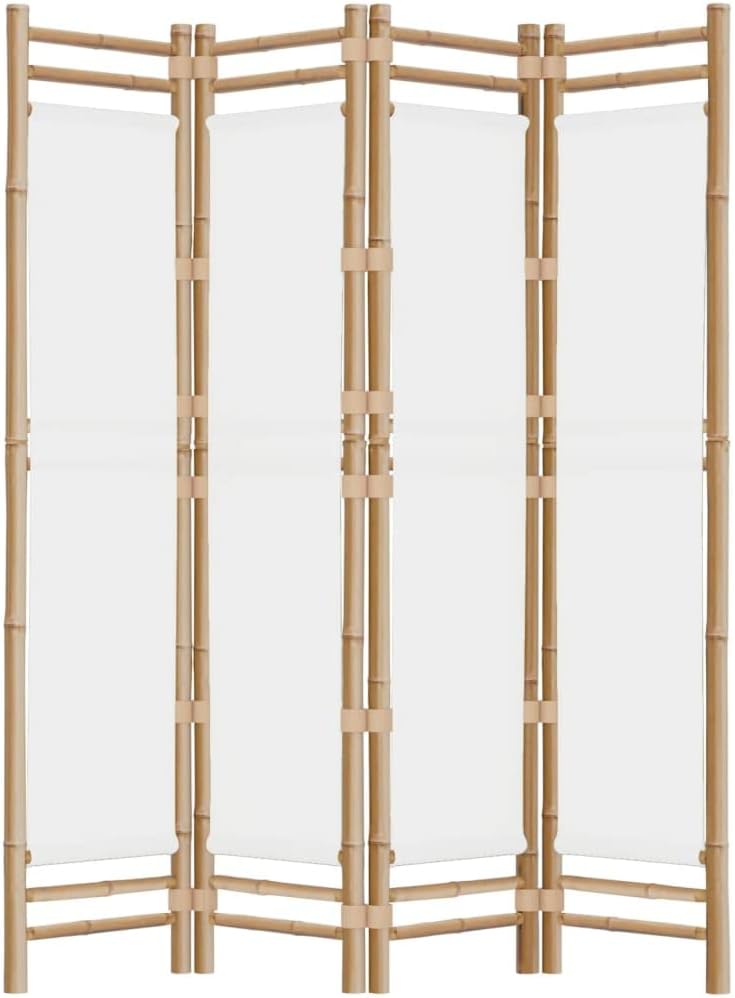 Folding 4-Panel Room Divider 63" Bamboo and Canvas,Bamboo Room Divider for Privacy and Style, Foldable Partition for Any Room, Cream White Bedroom Furniture