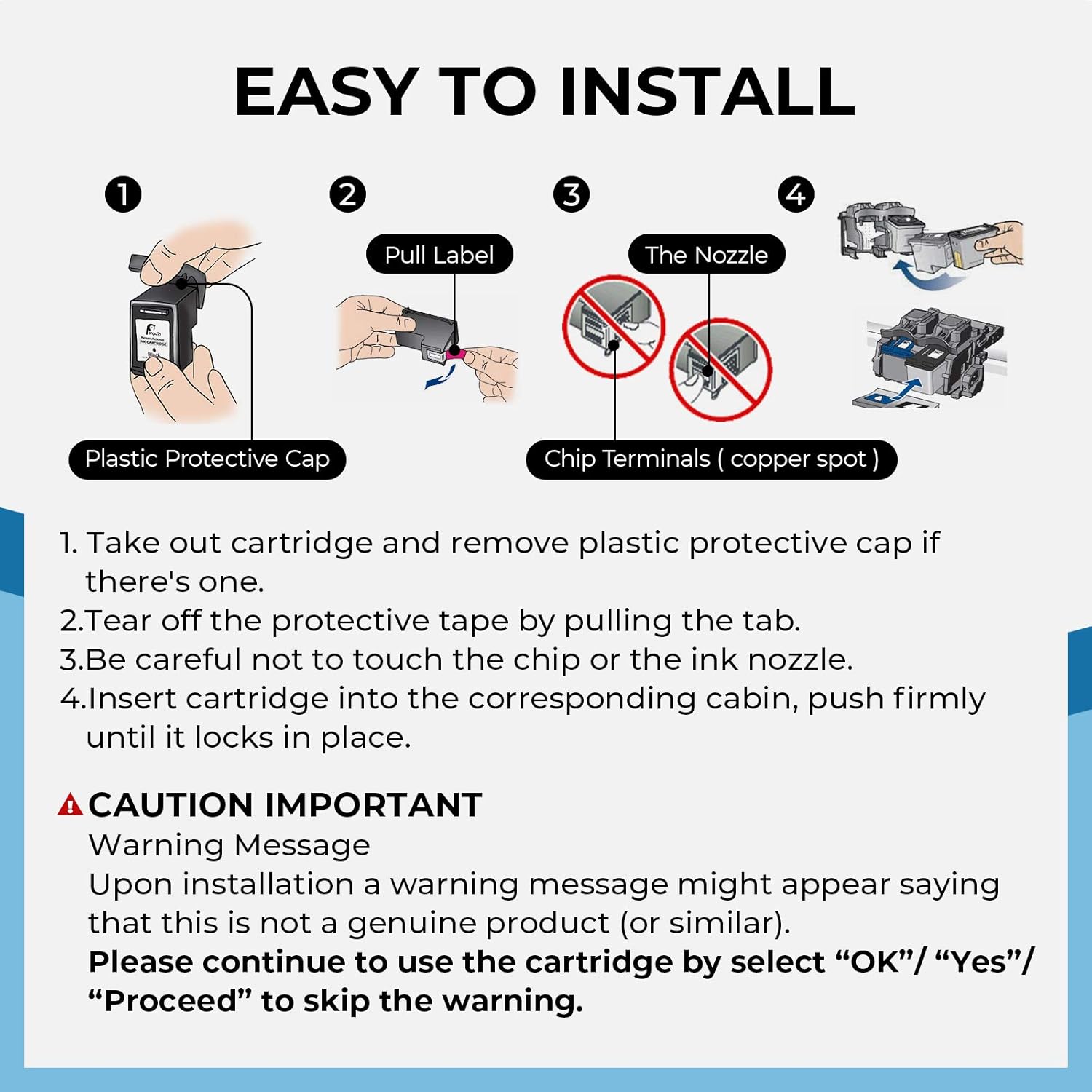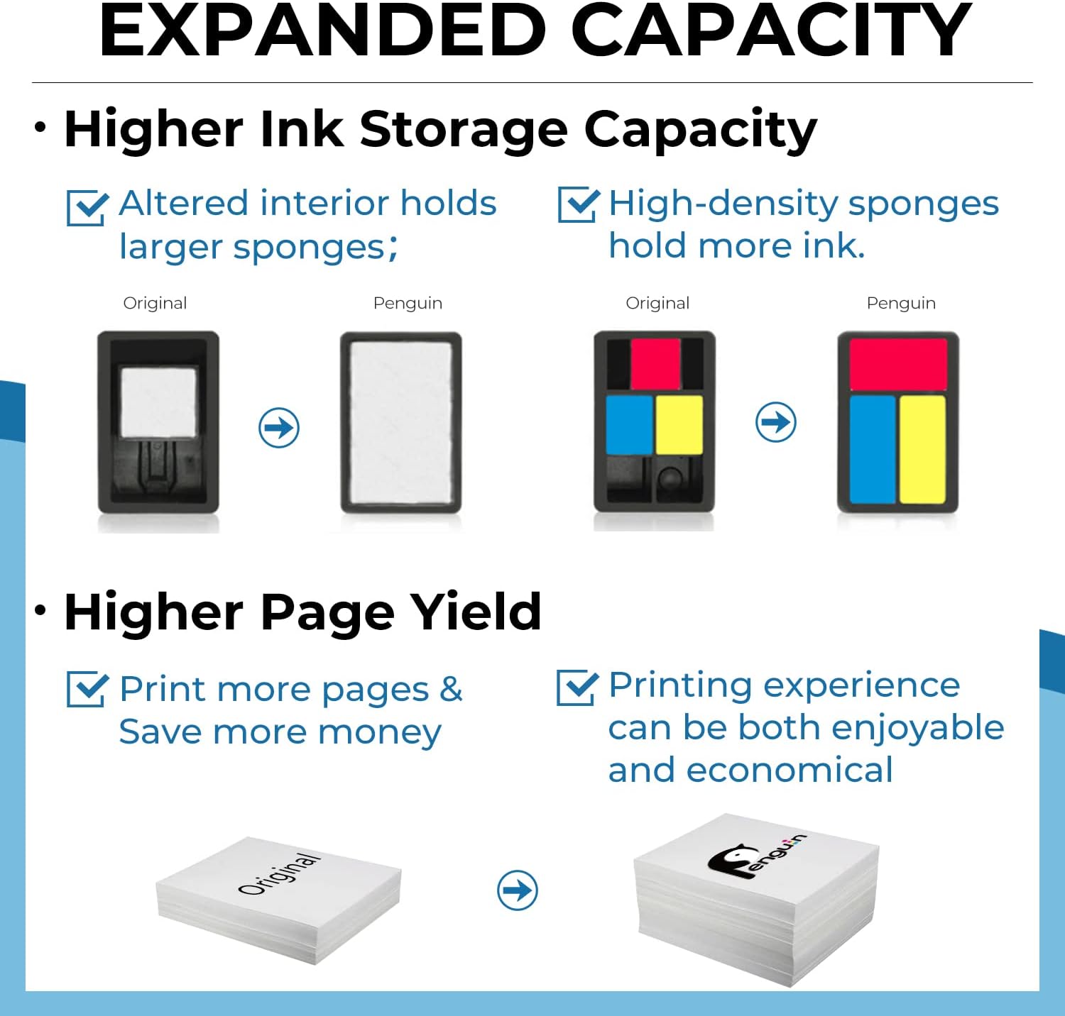 Penguin 65XL Ink Cartridges for HP 65 XL for Printers DeskJet 2600 2622 2624 2636 3700 3722 3750 3752 3755 3772 2652 2680 envy 5055 5052 5010 Replacement High Yield hp65 Black/Tri-color Combo Pack