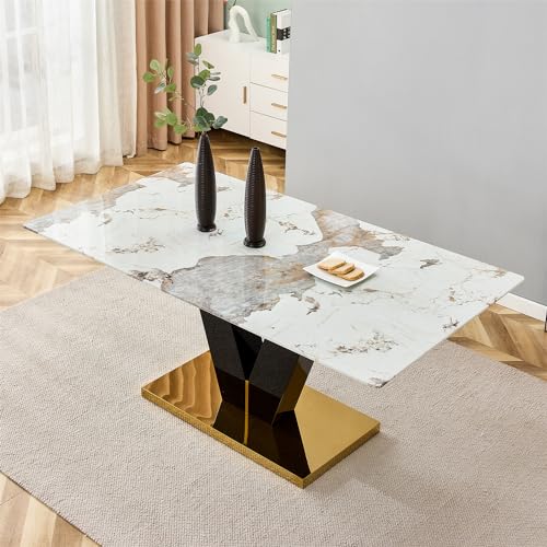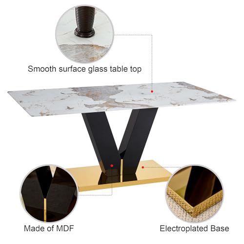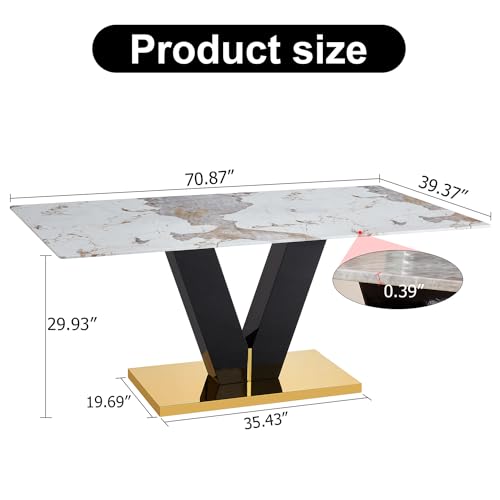 71'' Faux Marble Dining Table and Chair Set for 6, Dining Table Set for 6, Modern Dining Room Table Set for 6 for Living Room Home (Black Gold Table+White B Chairs, 1 Table+6 Chairs)