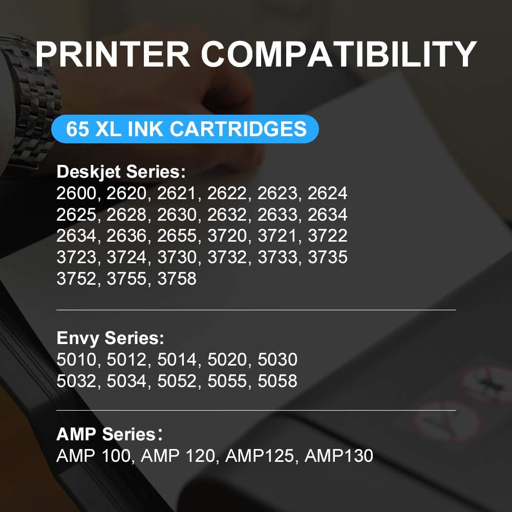Remanufactured Ink Cartridges Replacement for HP 65XL 65 XL Ink Cartridge for Envy 5055 5052 5058 DeskJet 3755 2652 2655 3722 3723 3752 3758 3730 3720 3700 2622 2655 Printer (1 Black, 1 Color)