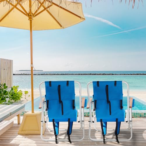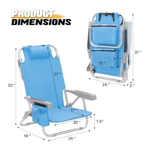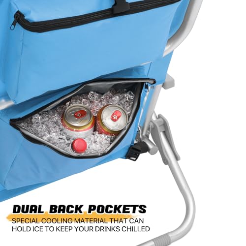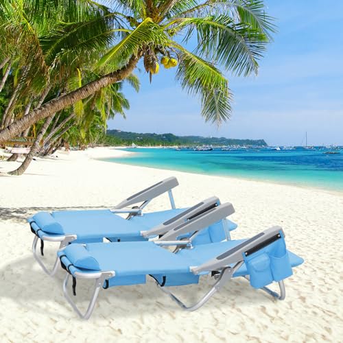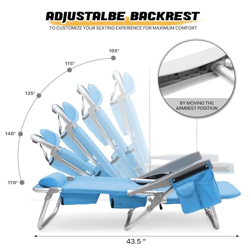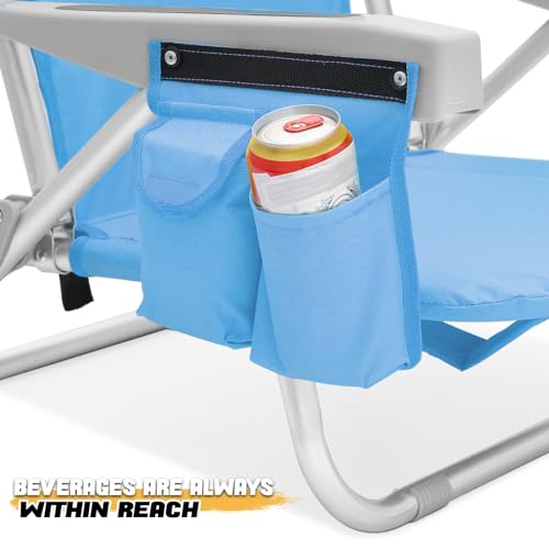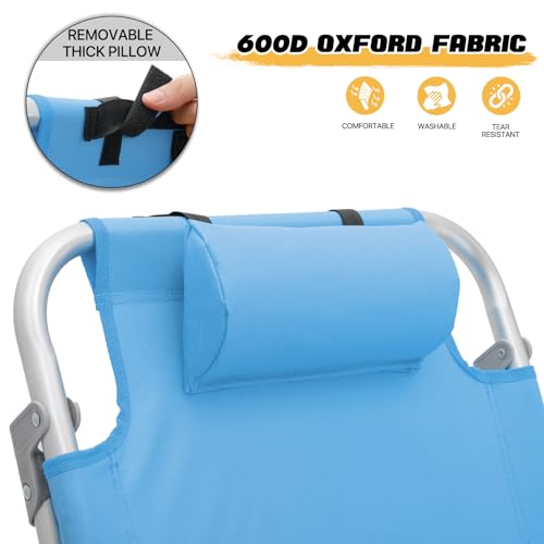 Outvita Folding Beach Chair Adjustable Headrest w/4 Flexible Tilt Angle, Cup Holder Portable High Strength Cleanable Fabric, for Sand Camping Lawn Concert Travel Festival
