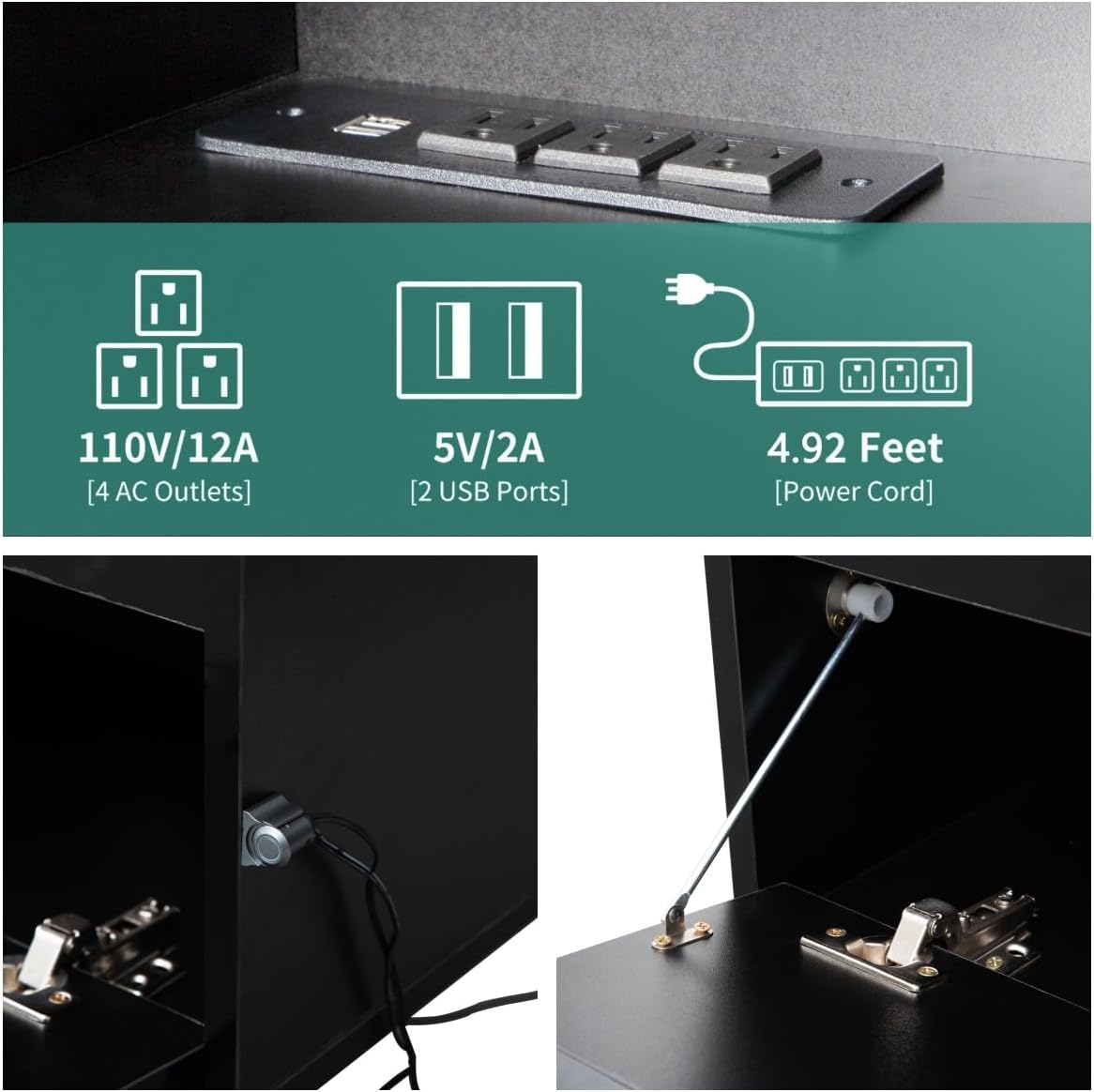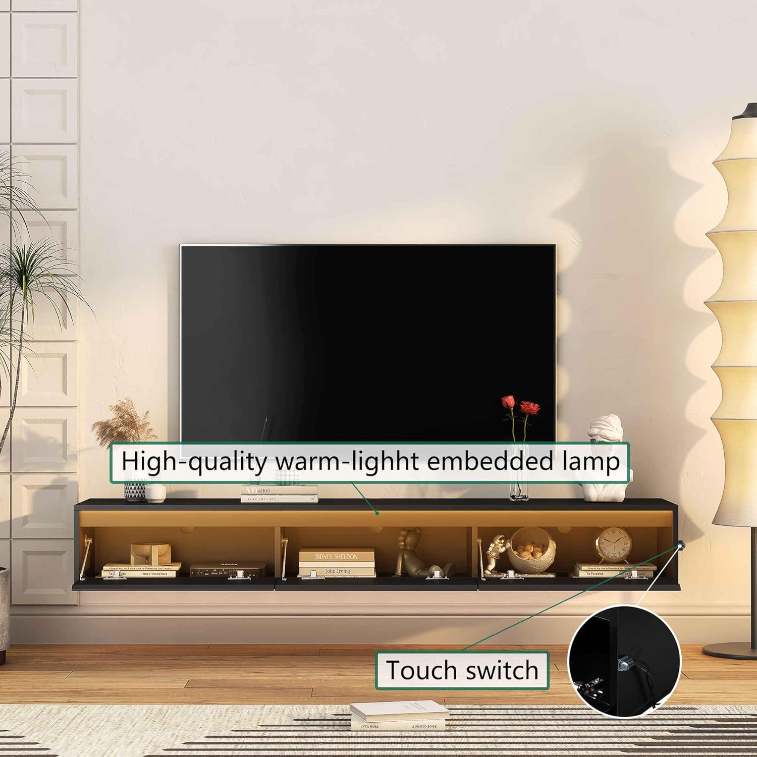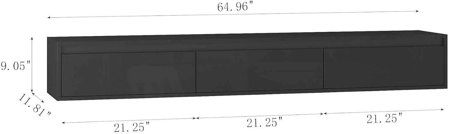 Floating TV Stand, Wall Mounted TV Shelf with Led Lights & Power Outlet, High Gloss TV Cabinet,Black Media Console tv Stands with Doors for Living Room,Bedroom