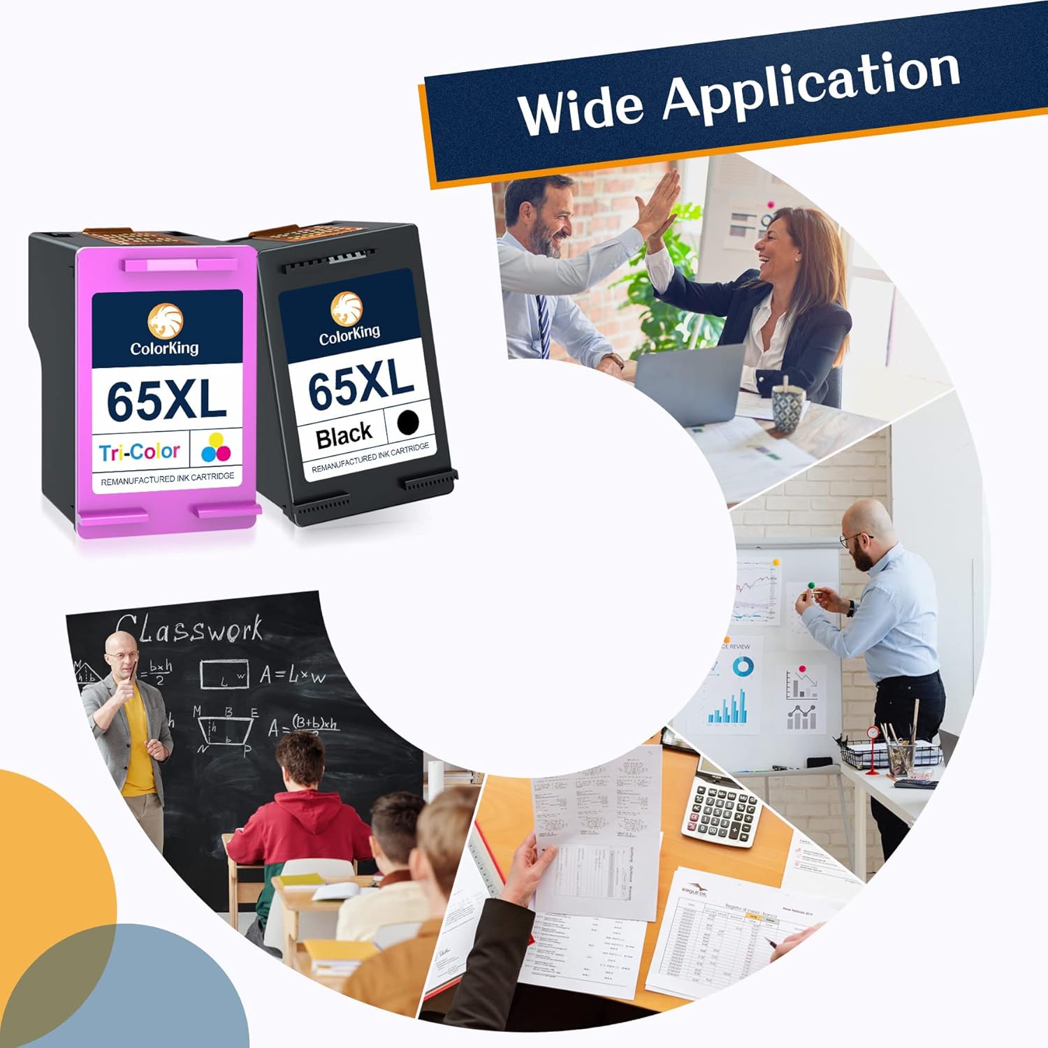 65 Ink Cartridges Black Color Combo Pack Remanufactured for HP 65XL 65 XL Ink Replacement for Envy 5055 5052 5058 5000 DeskJet 3755 3752 2655 3720 3722 3723 3700 2652 2600 Printer (1 Black, 1 Color)