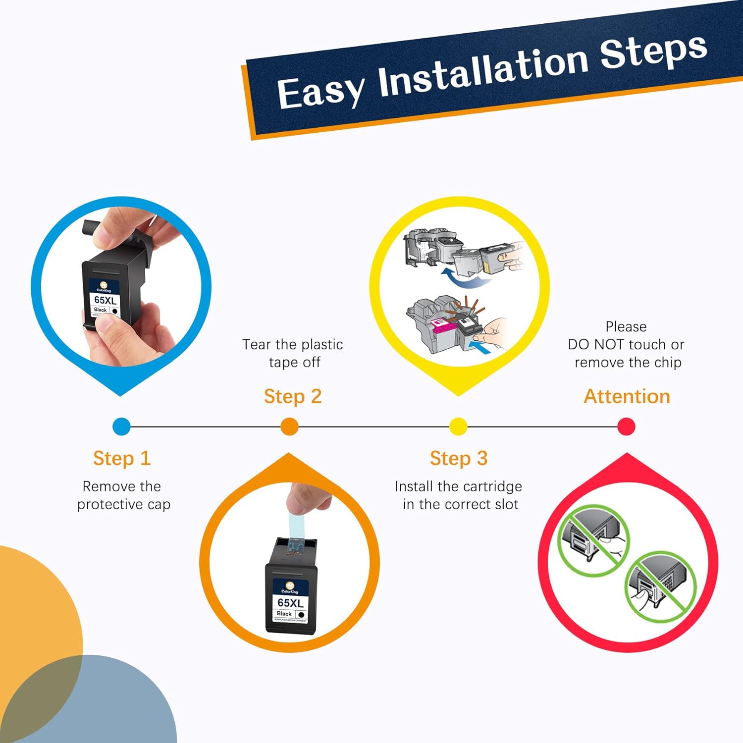 COLORETTO 65XL Ink Cartridge for HP Printers as Replacement for HP 65XL 65 XL 65xl hp65 hp65xl Combo Pack for Envy 5000 5055 5052 5058 DeskJet 3700 3752 3755 2652 2655 3720 3758 High Yield (2 Black)