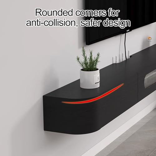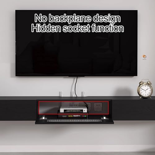 Floating TV Stand Wall Mounted, TV Shelf with Led Lights & Power Outlet, Wood Media Console Entertainment Cente, TV Cabinet with Storage for Living Room, Black