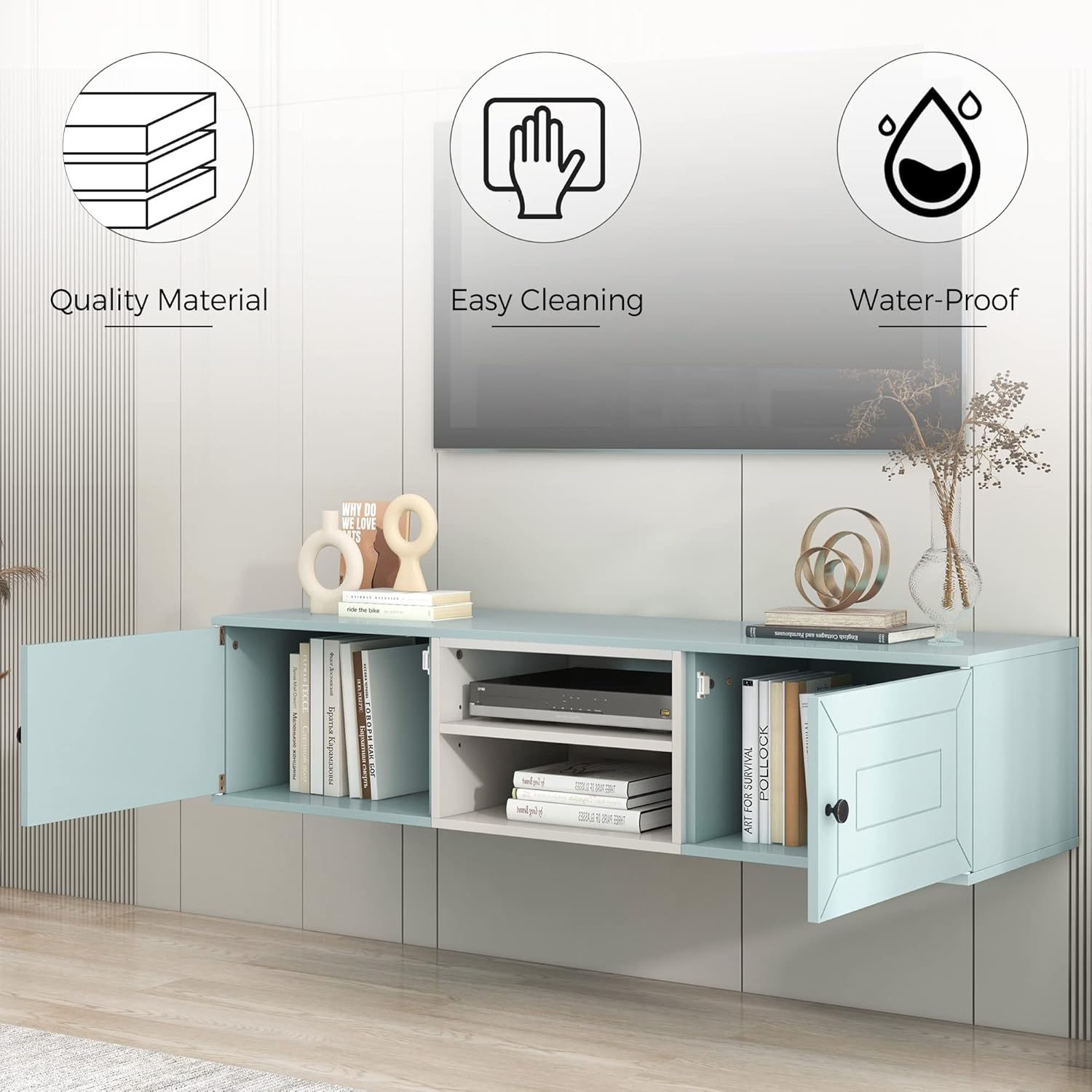 Wall Mounted 65" Floating TV Stand with Large Storage Space, 3 Levels Adjustable shelves, Magnetic Cabinet Door, Cable Management