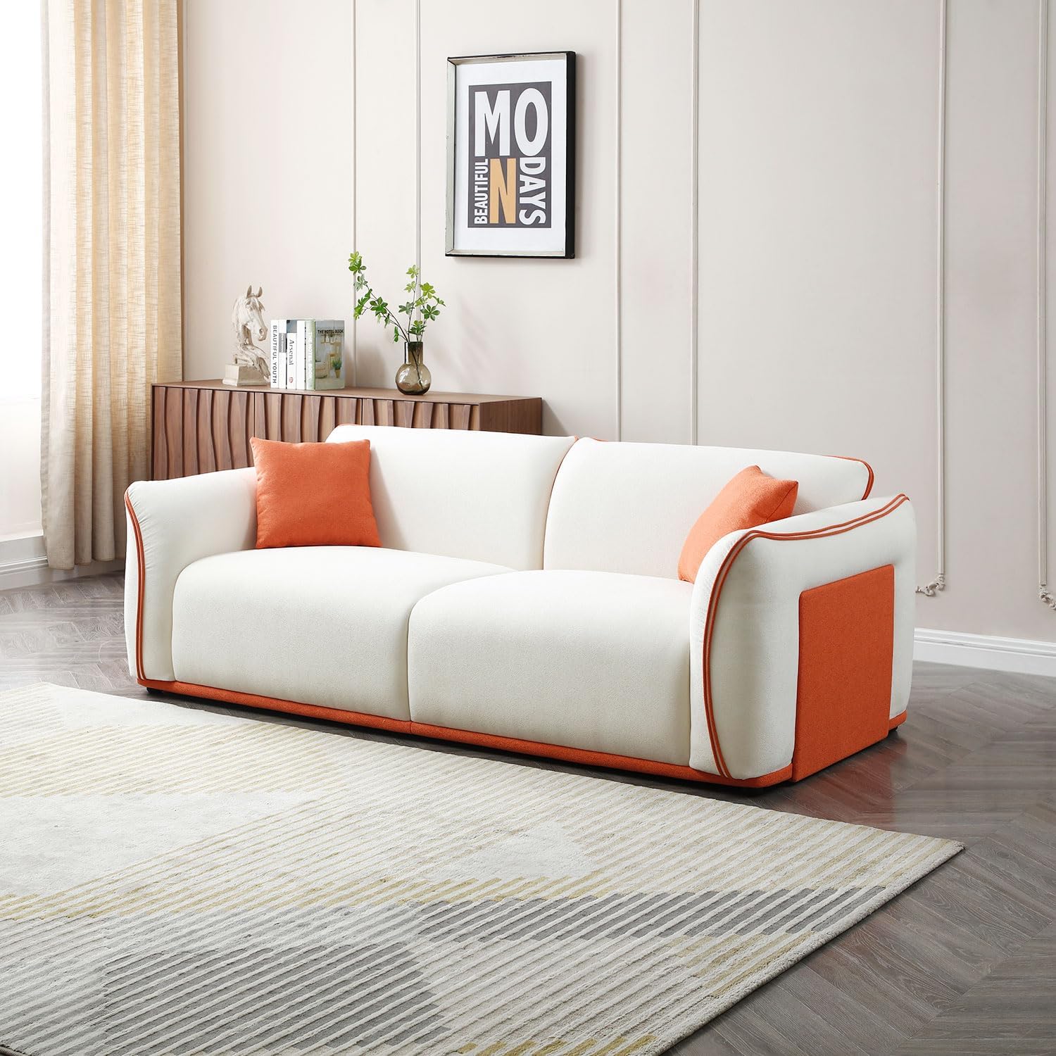 Sofa Couch, 86.22" Modern Upholstered Sofa Fabric Loveseat with Pillows for Living Room, Bedroom and Office, Beige