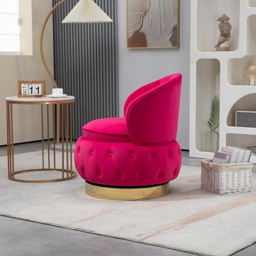 Modern Swivel Chair, Velvet Accent Chair with Storage, Round Sherpa Chair, Upholstered Comfy Armchair with Tufted Back for Nursery, Living Room, Bedroom, Office, Waiting Room, Navy Blue