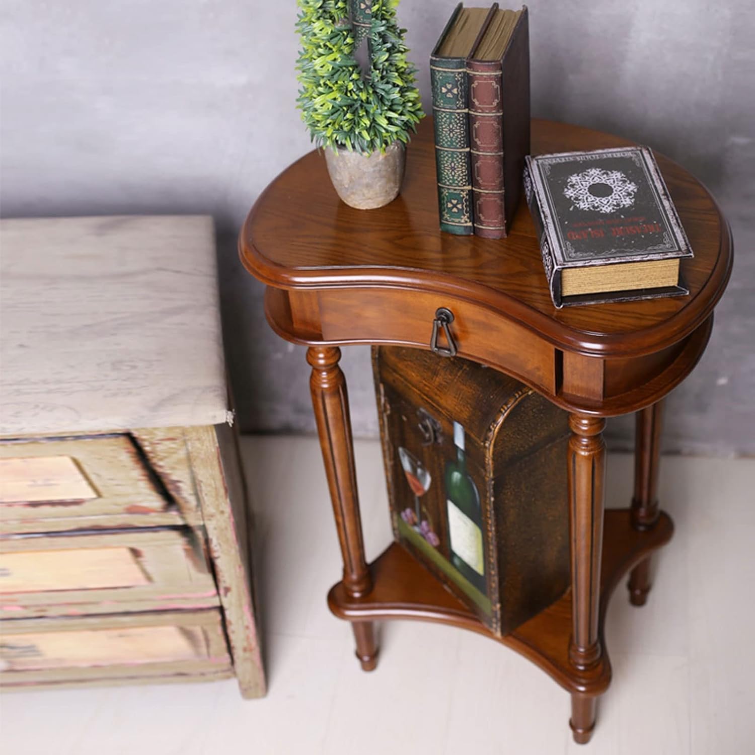 Side Table Solid Wood Side Table, 2-Tier End Table with Storage Shelf and Drawer, Narrow Nightstand Bedside Table for Small Spaces, Bedroom, Living Room, Entryway, Farmhouse Coffee table