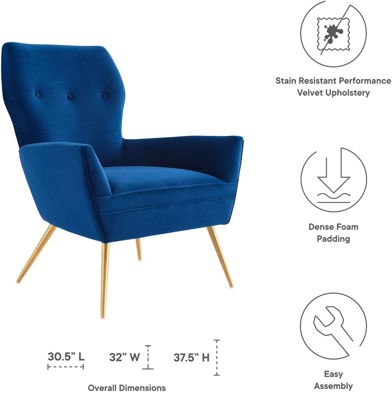 Modway Renata Modern Tufted Performance Velvet Armchair in Navy/Gold