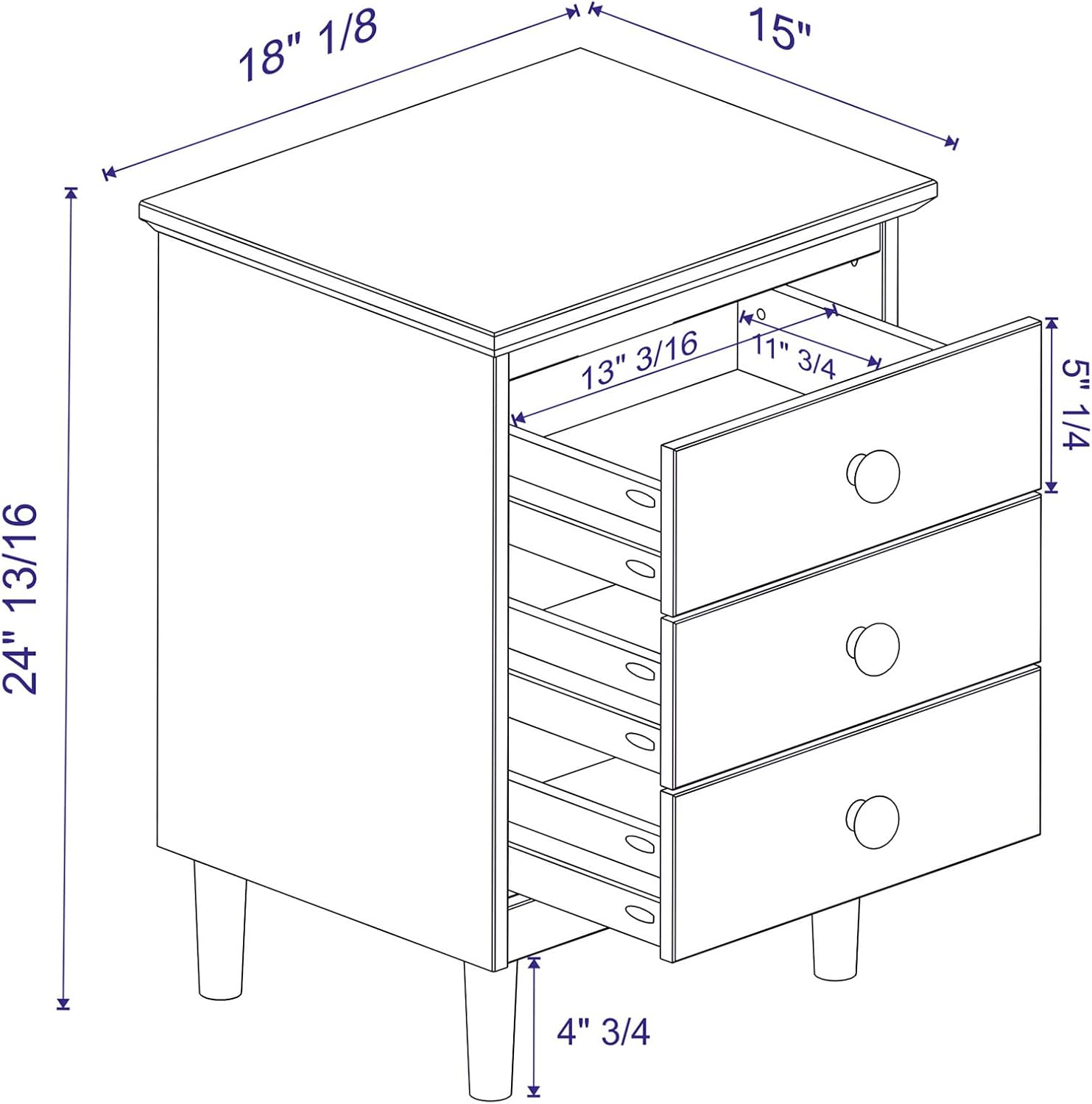 Classic 3-Drawer Solid Wood Nightstand - Walnut