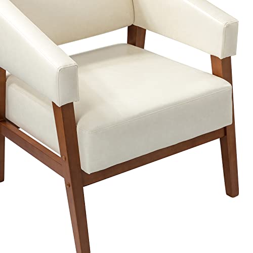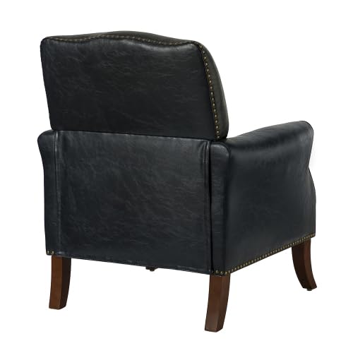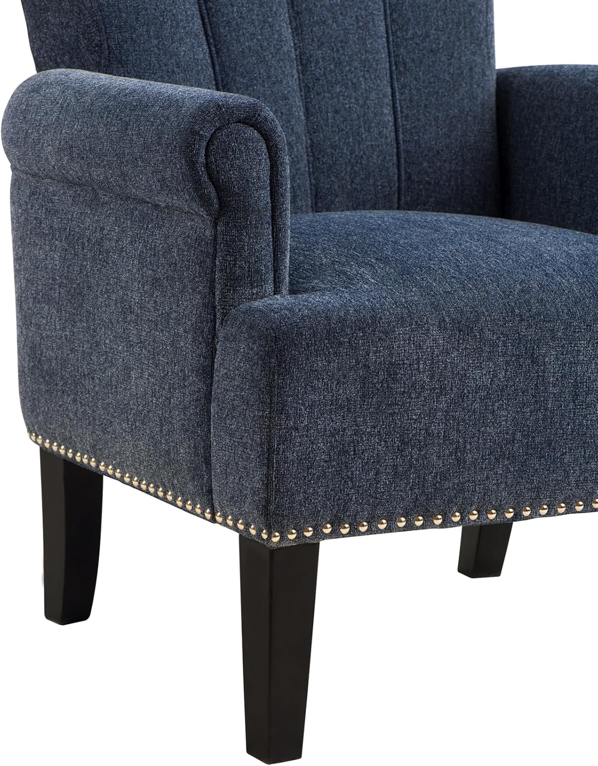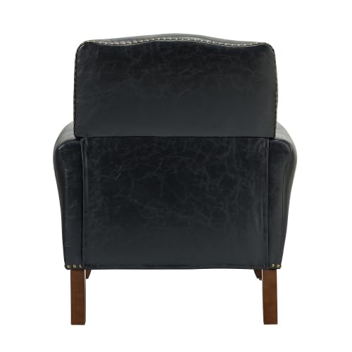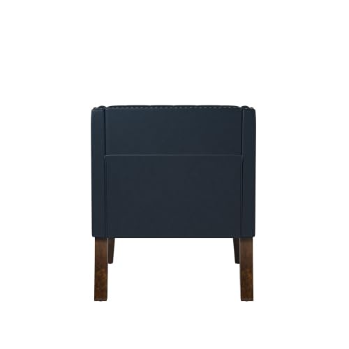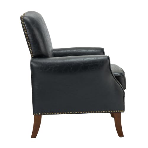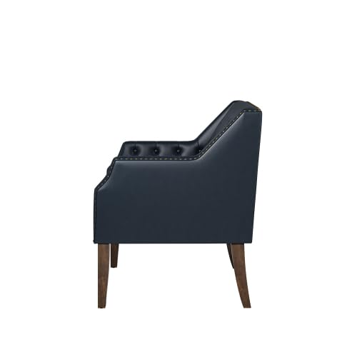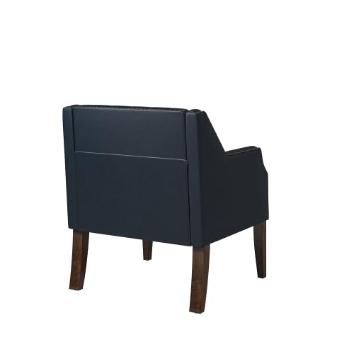 HULALA HOME Modern Faux Leather Accent Arm Chair with Solid Wood Legs, Comfy Upholstered Living Room Armchair with Angular Armrests, Mid Century PU Leather Lounge Chair for Bedroom/Office, Navy