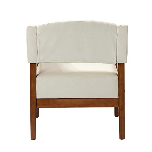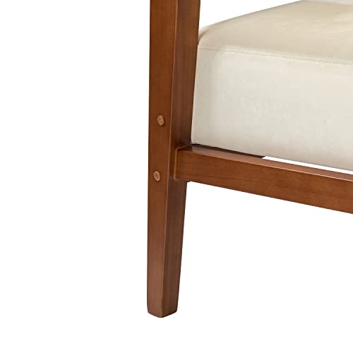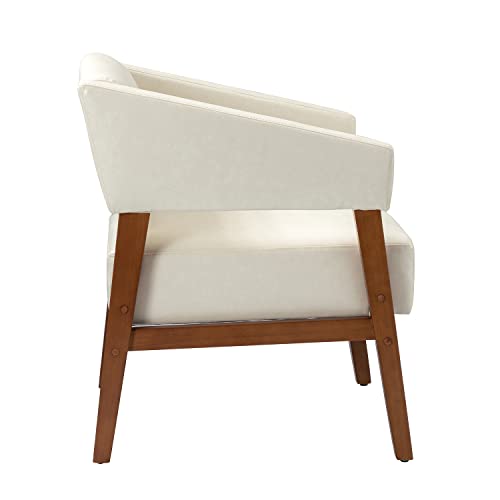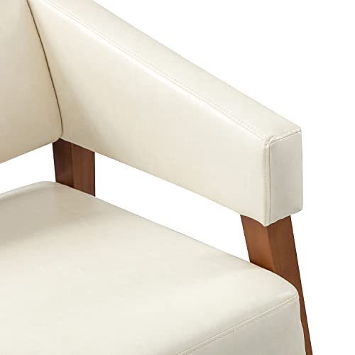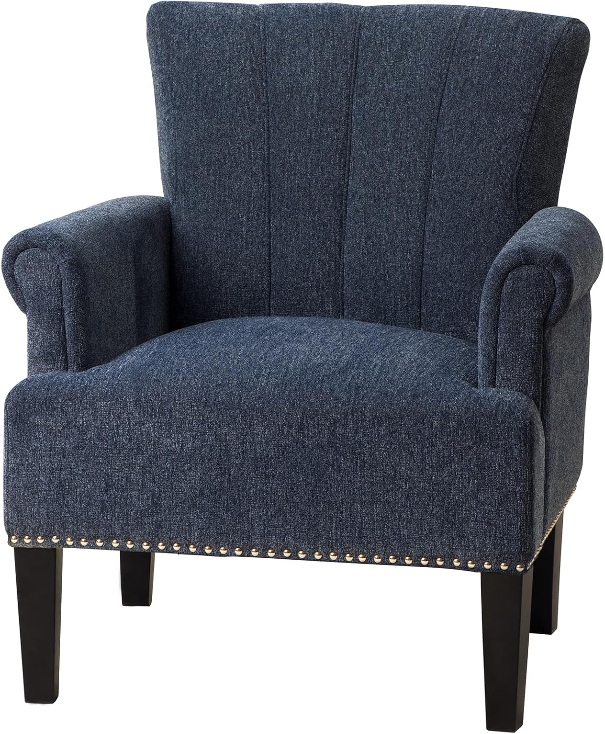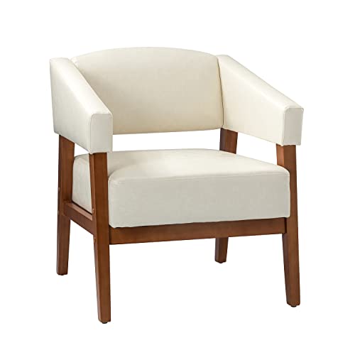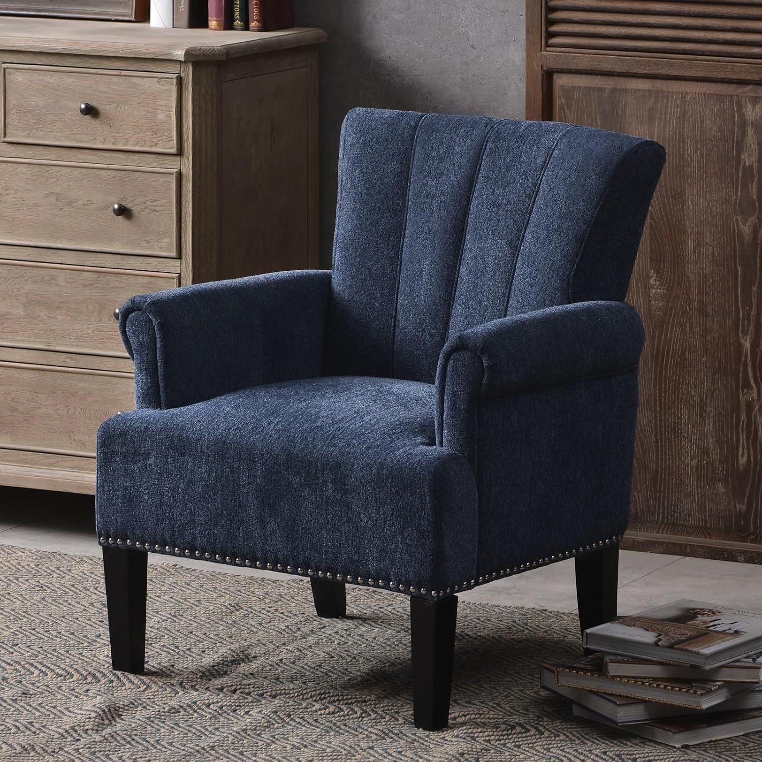 HULALA HOME Modern Faux Leather Accent Arm Chair with Solid Wood Legs, Comfy Upholstered Living Room Armchair with Angular Armrests, Mid Century PU Leather Lounge Chair for Bedroom/Office, Navy