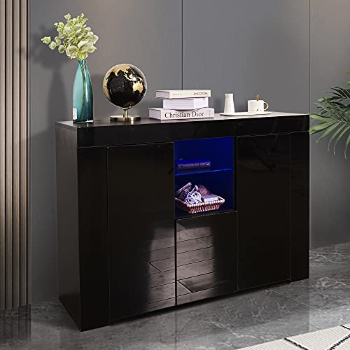 LUMISOL Modern Sideboard Cabinet High Gloss with LED Light, 3 Doors Sideboard TV Stand for Living Room Wood Buffet Storage Cabinet for Hallway Dining Room