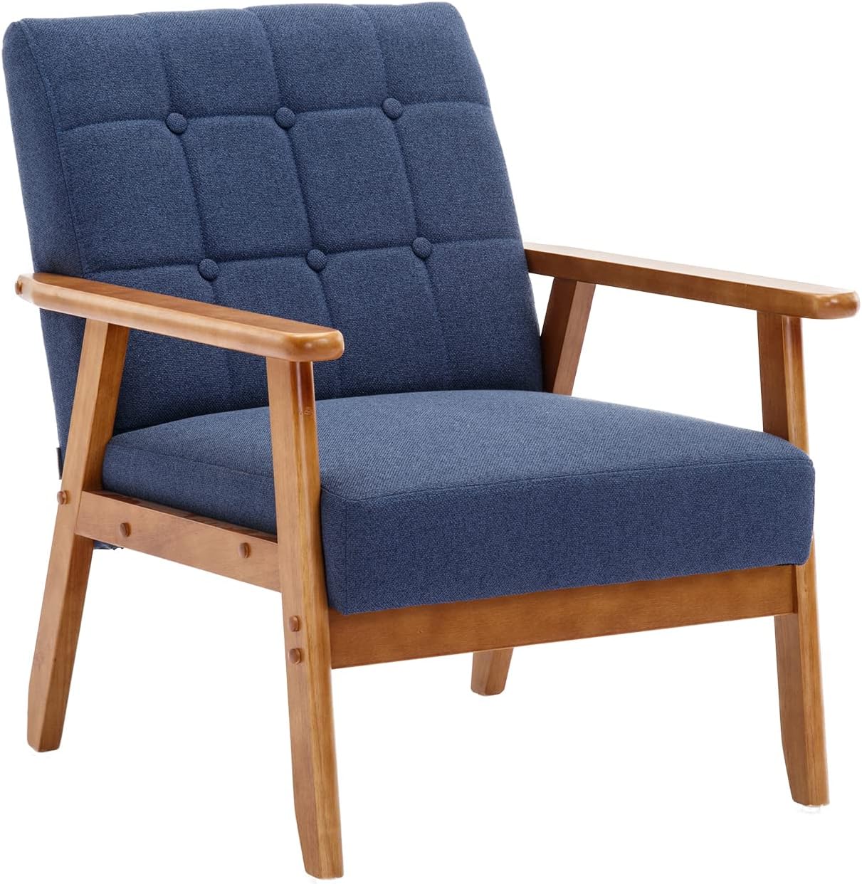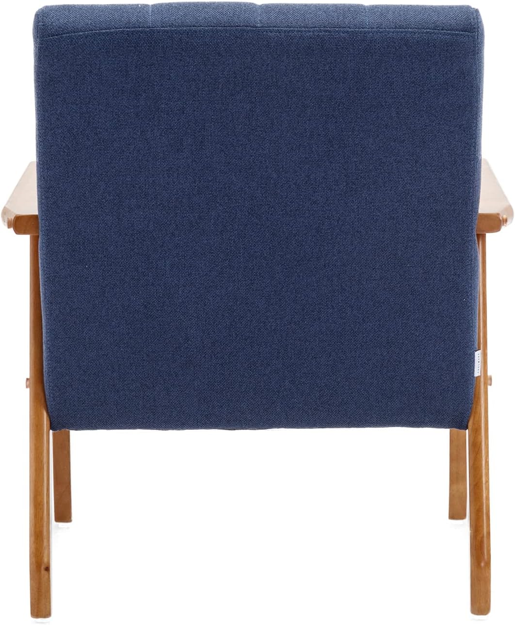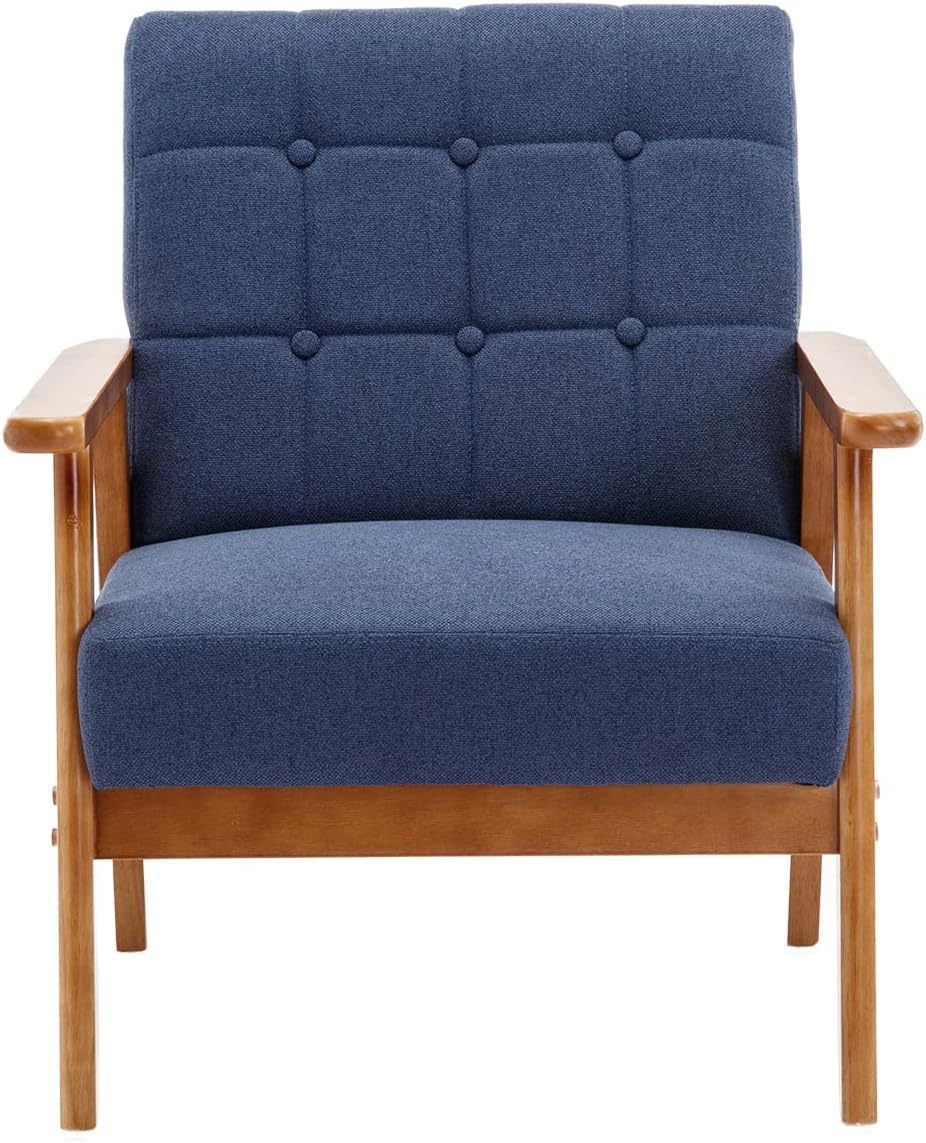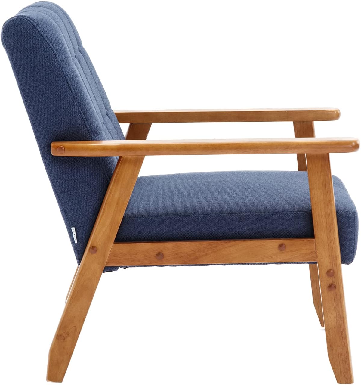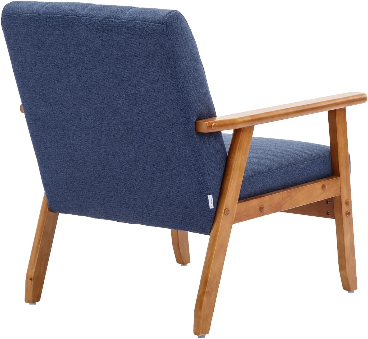 Accent Chairs Set of 2 with Side Table, Mid Century Modern Accent Chair, Wood and Fabric Armchairs Side Chair, Lounge Reading Comfy Arm Chair for Living Room, Bedroom, Office (Navy)