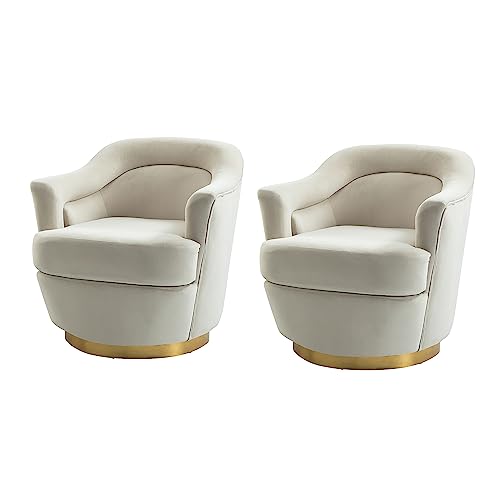 HULALA HOME Swivel Barrel Chair, Modern Round Accent Chair w/Removable Cushion, Armchairs Upholstered Comfy 360 Degree Swivel Set of 2 Circle Club Sofa Chair for Living Room Bedroom, Navy