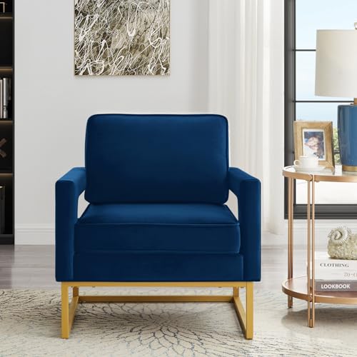 Accent Chair, Modern Velvet Upholstered Armchair Lounge Chair with Metal Frame, Comfy Reading Chair Single Sofa Chair with Hollow Armrests for Living Room, Lounge, Office, Bedroom, Navy
