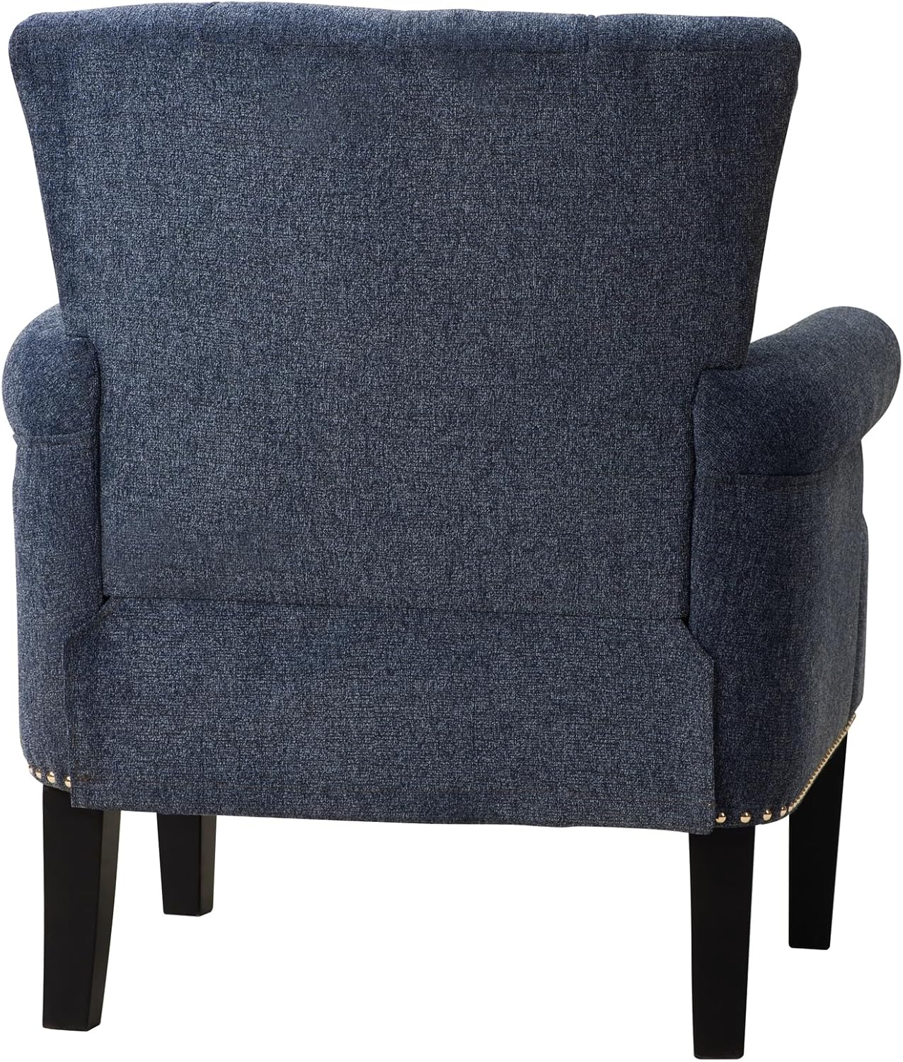 Sweethome Stores 32" Pull Out Arm Storage, Firm, Fabric, 230 lbs Cap, Sleeper Bed for Living Room or Home Office Convertible Sofa, Minimalist Chair, Armchair, Navy