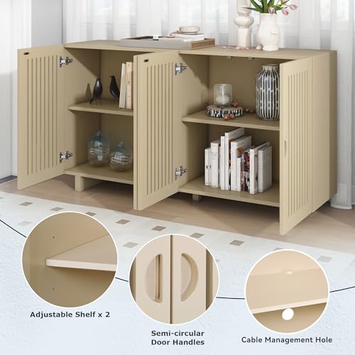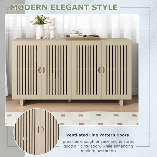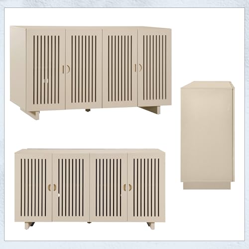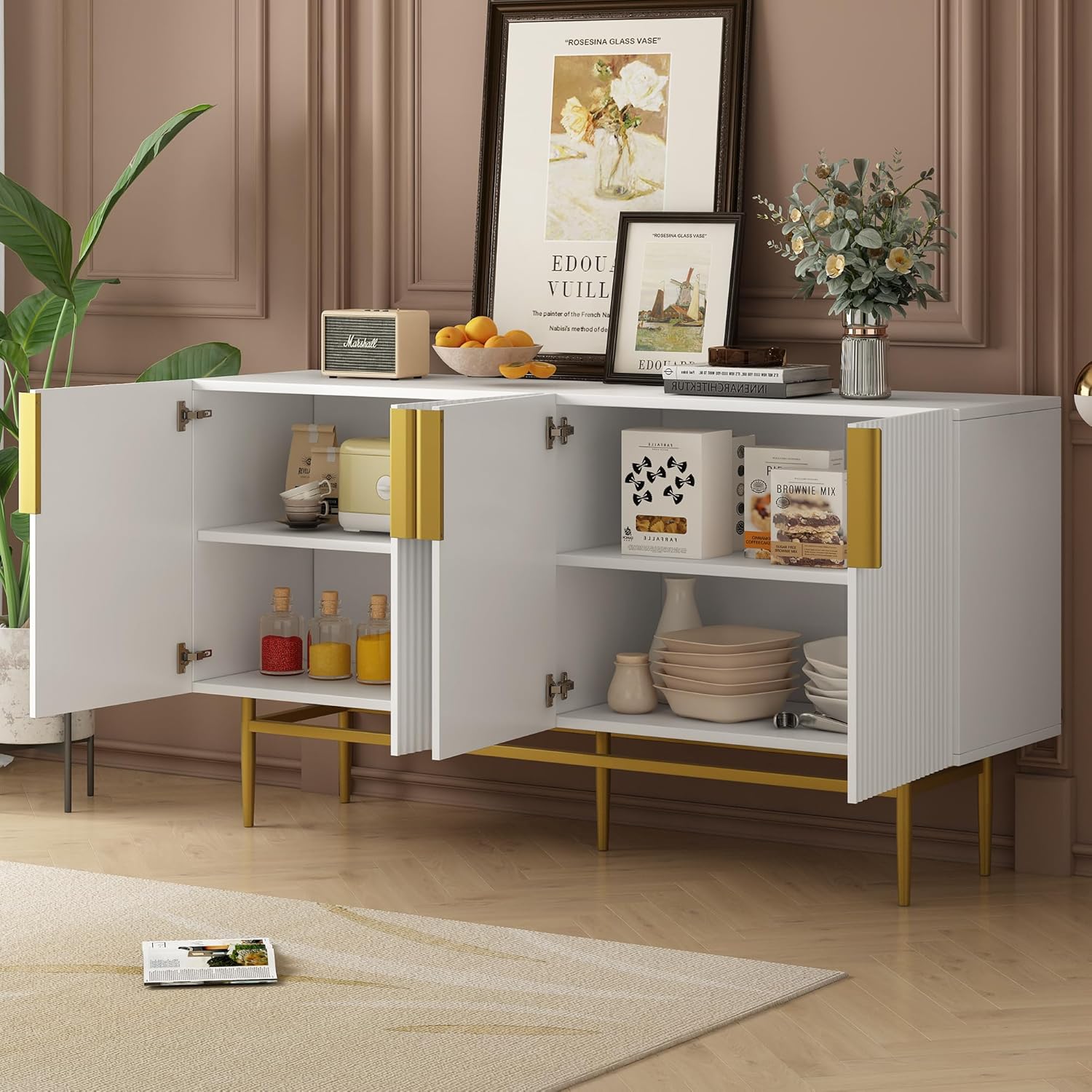 60" Sideboard, Modern Buffet Four Door, Adjustable Shelf & Gold Handle, Freestanding Wood Storage Cabinet for Living, Dinning Room, Hallway, White, Full