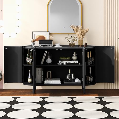 Curved Design Light Luxury Sideboard Cabinet with Adjustable Shelves,Modern Buffet Storage CabinetSuitable for Living Room,Study,Entrance(Blue)