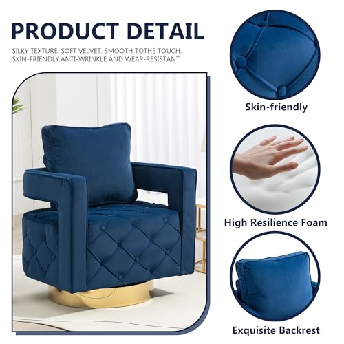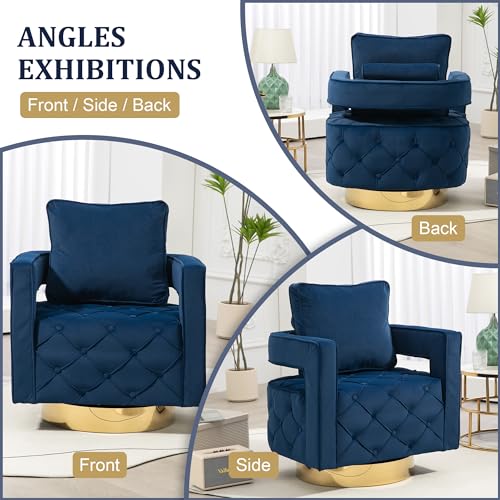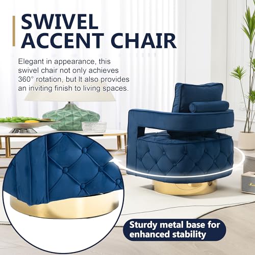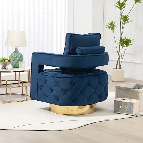Swivel Accent Chair - Modern Accent Chair with Pillow, Velvet Armchair Side Chair with Tufted Button for Living Room, Bedroom, Office(Navy)