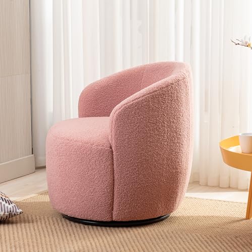 Swivel Barrel Chair, Upholstered Modern Round Accent Arm Chairs, 360° Swivel Single Sofa Armchair for Living Room and Bedroom,Teddy Fabric (Navy Blue)
