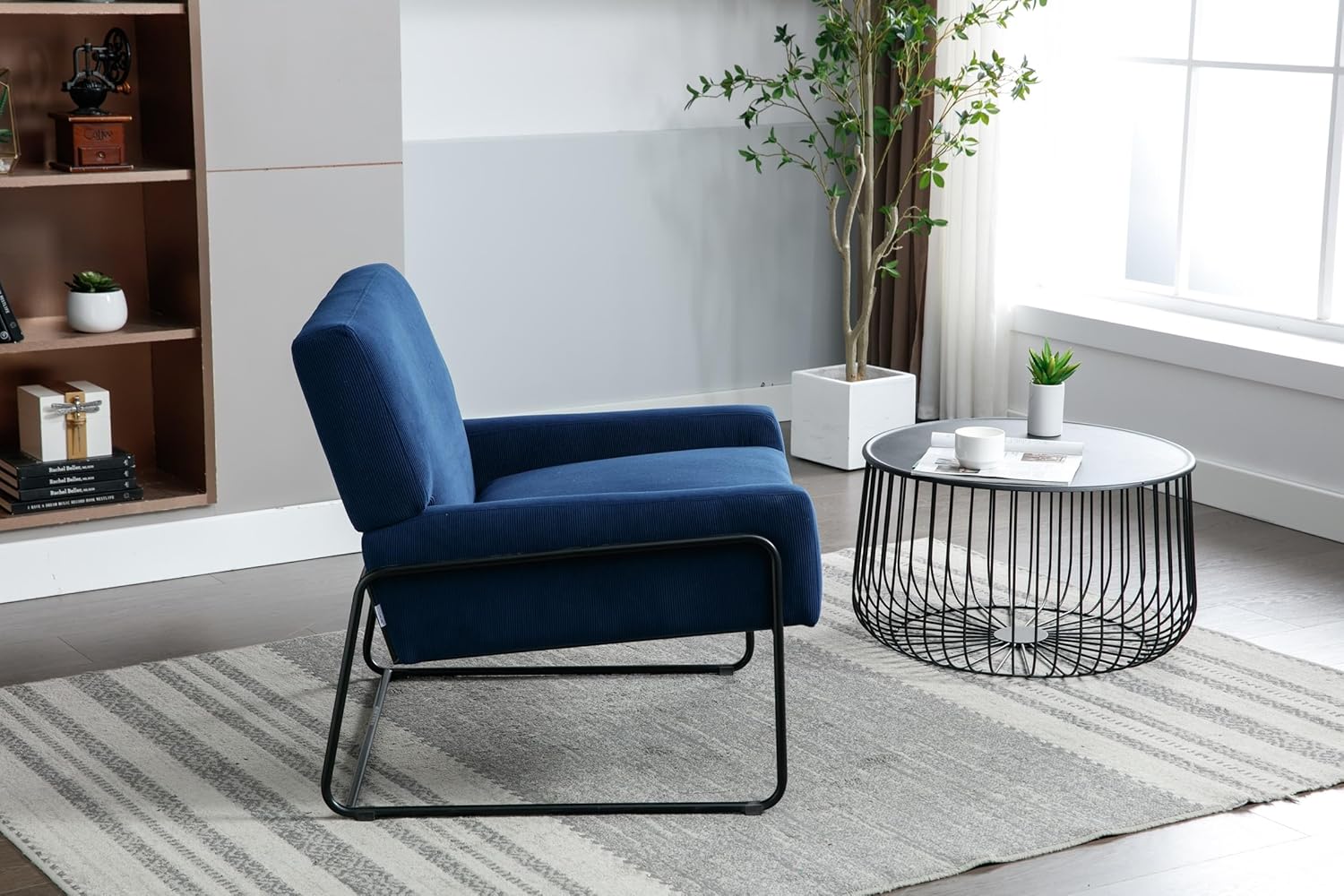 Accent Chair - Modern Industrial Slant Armchair with Metal Frame - Premium High Density Soft Single Chair for Living Room Bedroom,Navy