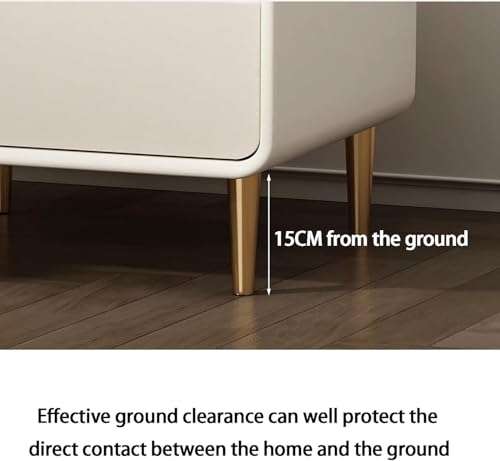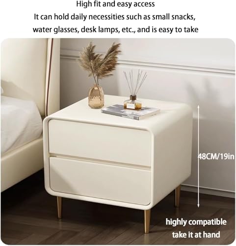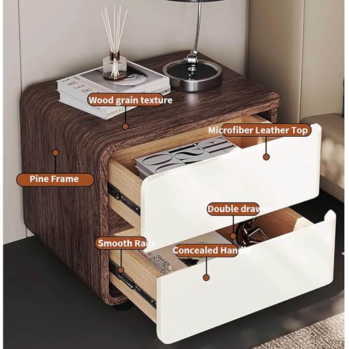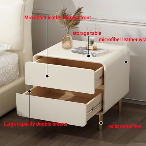 Modern Nightstands Solid Wood Bedside Cabinet with 2 Drawers End Table Leather Wrap Side Table with Metal Feet Drawer Dresser