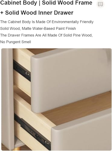 Solid Wood Nightstands Leather Wrapped Bedside Cabinet Light Luxury Bedroom Bedside End Table with 2 Drawers Bedside Dresser