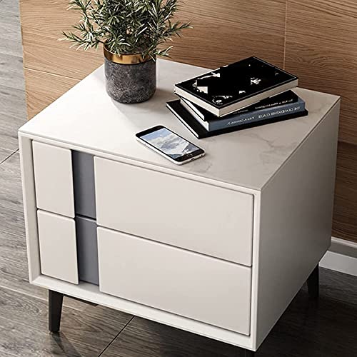 BK&MF Simple Modern Solid Wood Nightstand,Luxury Premium Wood Grain Leather Bedside Table Sturdy Wood Frame End Side Table for Bedroom,B,45x40x48cm(18x16x19inch)