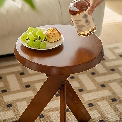 End Table Round End Table Solid Wood Coffee Table Simple Side Tables Living Room Bedroom Tray Table for Small Spaces Bedside Table Space-Saving