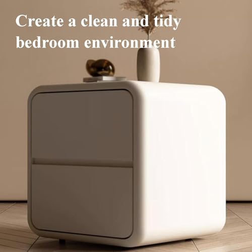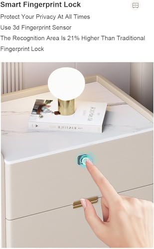 Bedroom End Table Modern Nightstand with Fingerprint Lock Solid Wood 2 Drawers Bedside Table Bedside Dresser