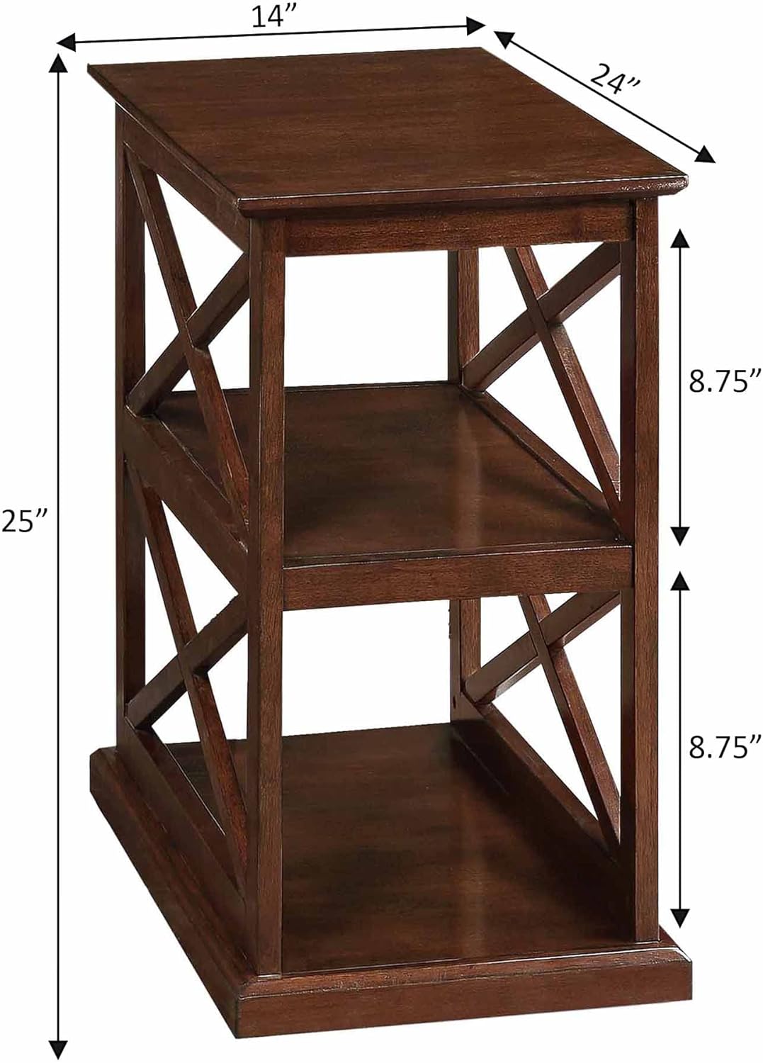 Convenience Concepts Coventry Chairside End Table with Shelves, Espresso
