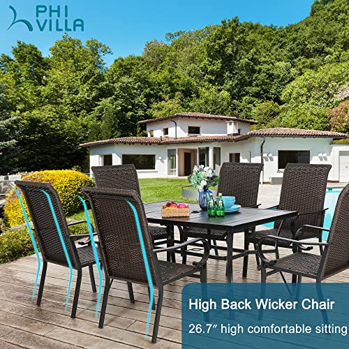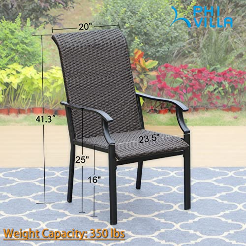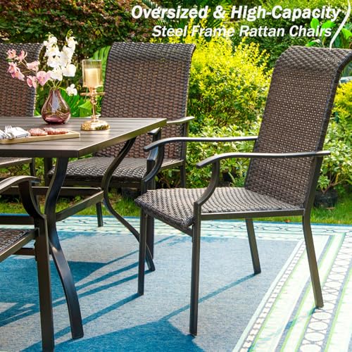 PHI VILLA Outdoor Rattan Dining Chairs Set of 6, Extra Large High Back Wicker Armchairs with Steel Frame, for Patio, Deck, Yard
