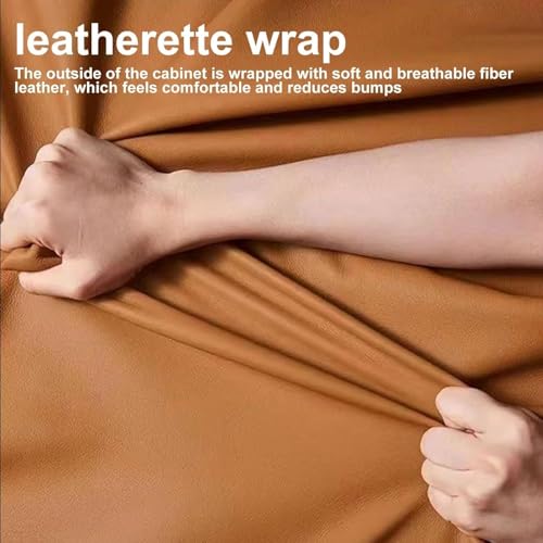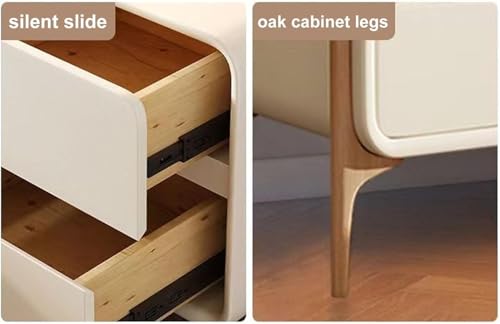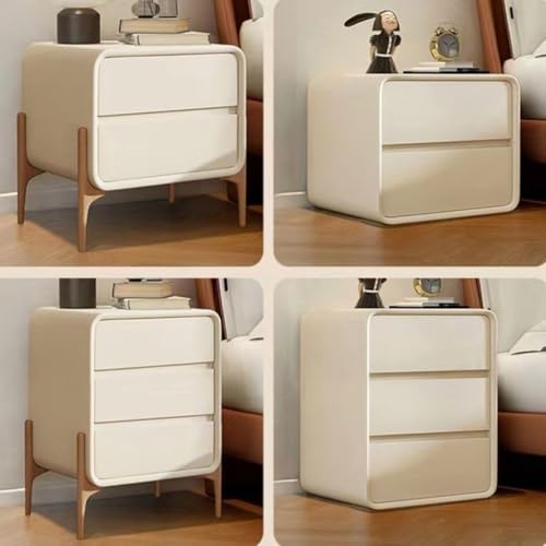 Chic End Table Modern Bedside Table with 3 Drawers Nightstand Storage Leather Wrap + 4 Solid Wood Legs Bedside Cabinet