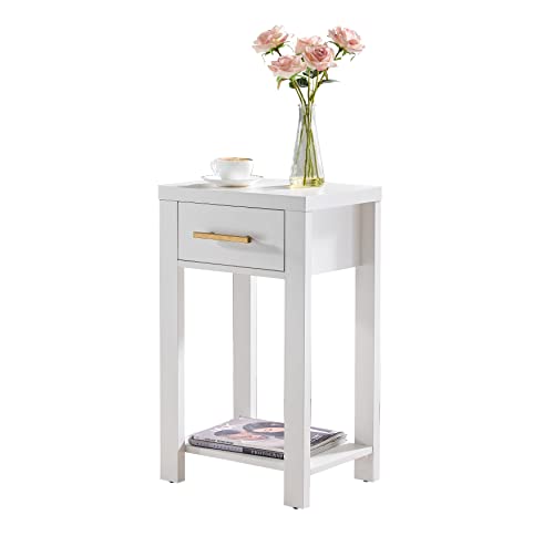 Kings Brand Furniture - Sendero Wooden Chairside Side End Table with Drawer and Open Storage Shelf, White