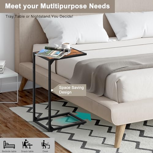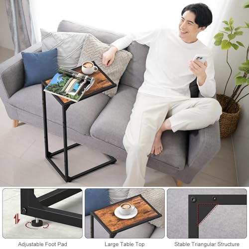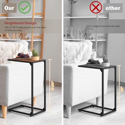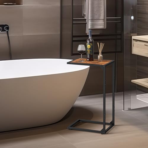 melos C Shaped End Table, Snack Side Table, C Tables for Couch, Couch Tables That Slide Under, for Living Room, Bedroom, Rustic Brown