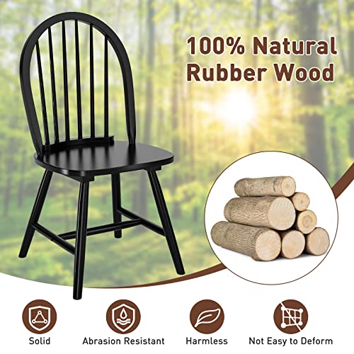 Giantex Wood Dining Chairs Set of 4, Windsor Chairs with Solid Wood Legs, High Spindle Back, H-Shaped Crossbars, Vintage Country Farmhouse Style Wooden Side Chairs, Black