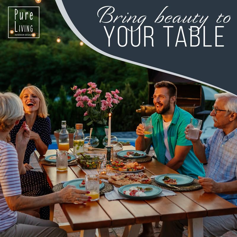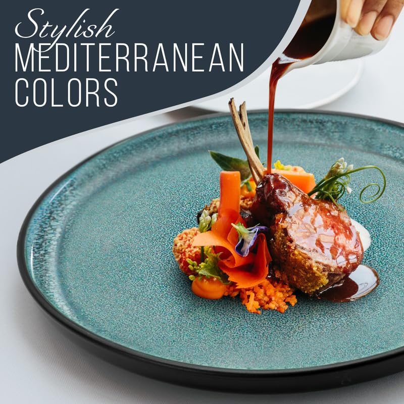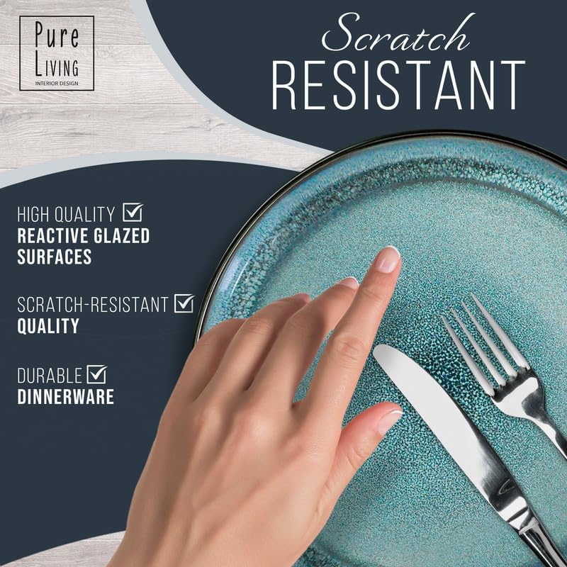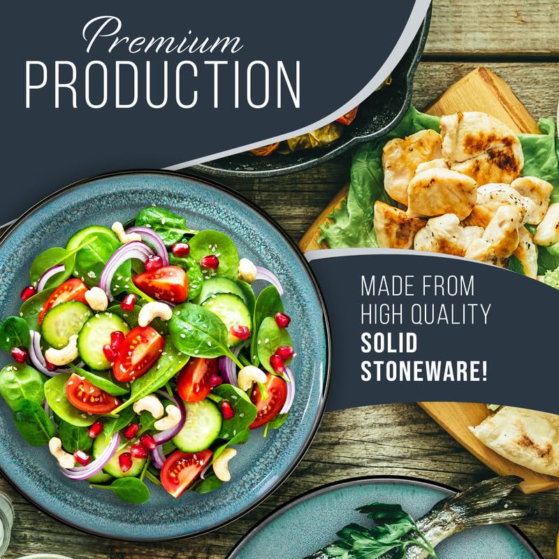 24 Piece Dinnerware Sets for 8 - Modern Style Stoneware Dinnerware Set - Microwave Safe Dinner Plates and Bowls Sets for 8, Ceramic Dish Set, Bowl and Plate Sets for 8, Beige Light Blue Set for 8