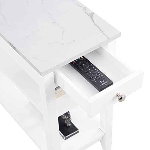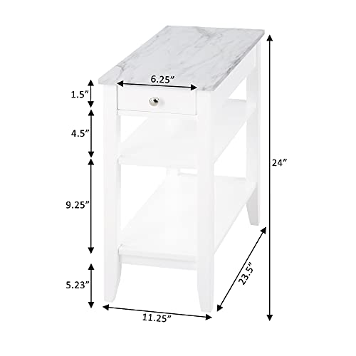 Convenience Concepts American Heritage 1-Drawer Chairside End Table with Shelves, White Faux Marble/White