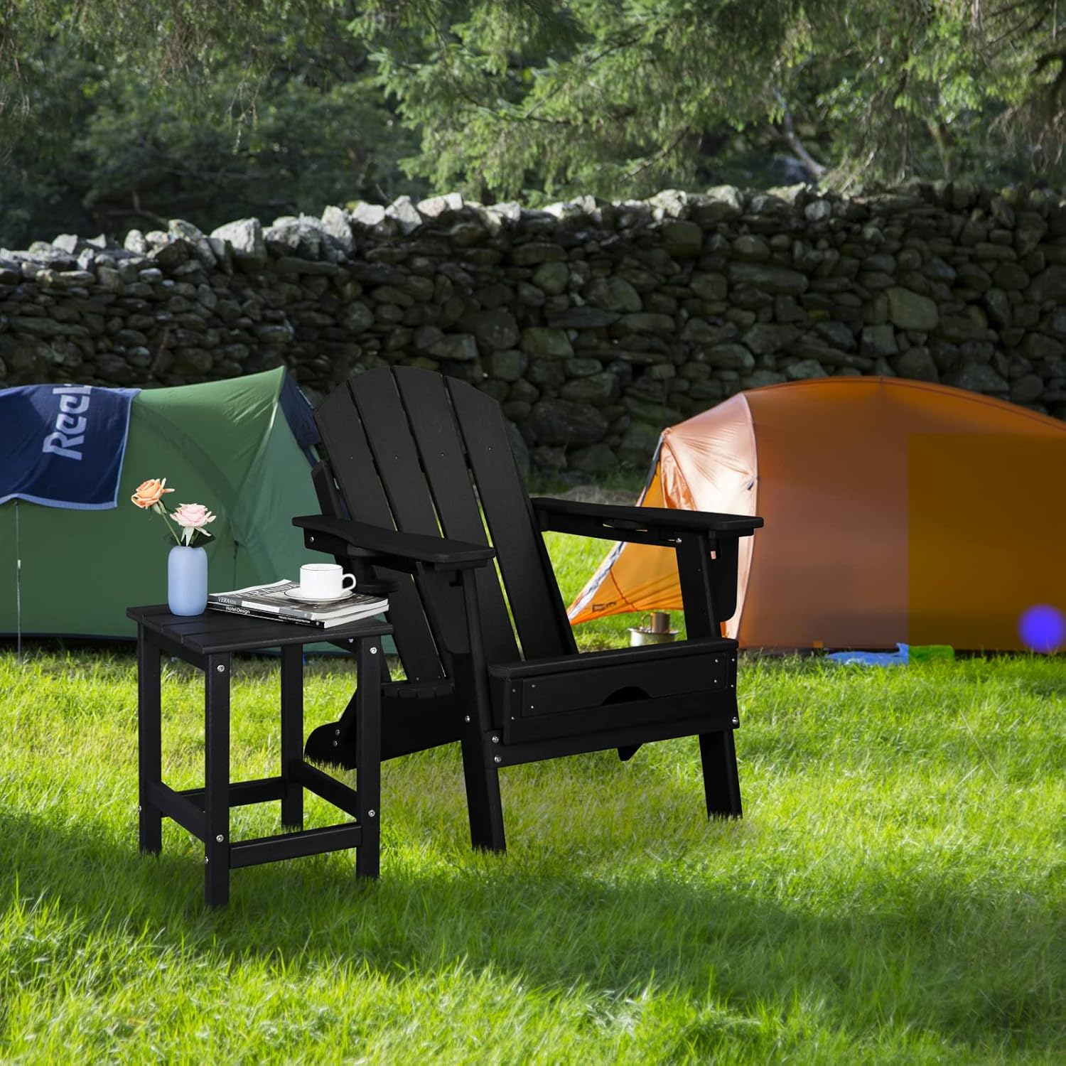 Black Outdoor Side Table,Double HDPE Patio End Table for Indoor,Porch,Pool,Patio Side Table for Balcony,Patio Coffee Table Chairside End Tables,Outdoor Side Tables 36 x 36 x 47cm