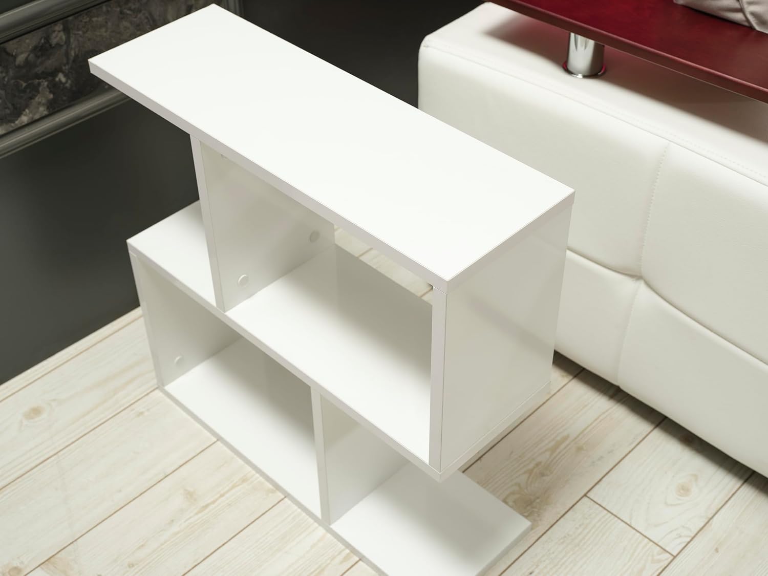 FurnisHome Store Alfa Rectangle 4 Shelves End Table, Narrow Chairside Table, 23 inch Skinny End Table for Living Rooms, White