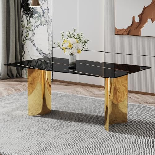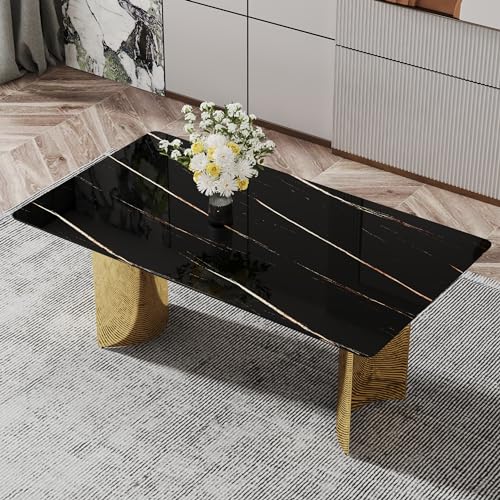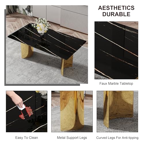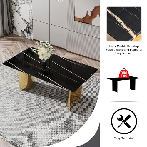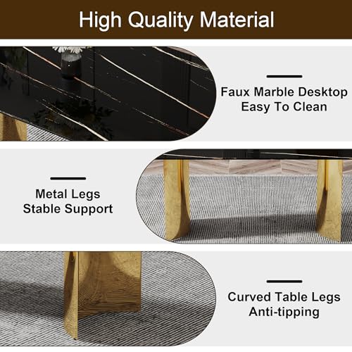 Faux Marble Dining Room Table Set for 8,Modern Rectangular Faux Marble Dining Table with Marble Top,9 Piece Marble Dining Table Set with 8 Pcs Leather Dining Chairs for Kitchen Dining Room