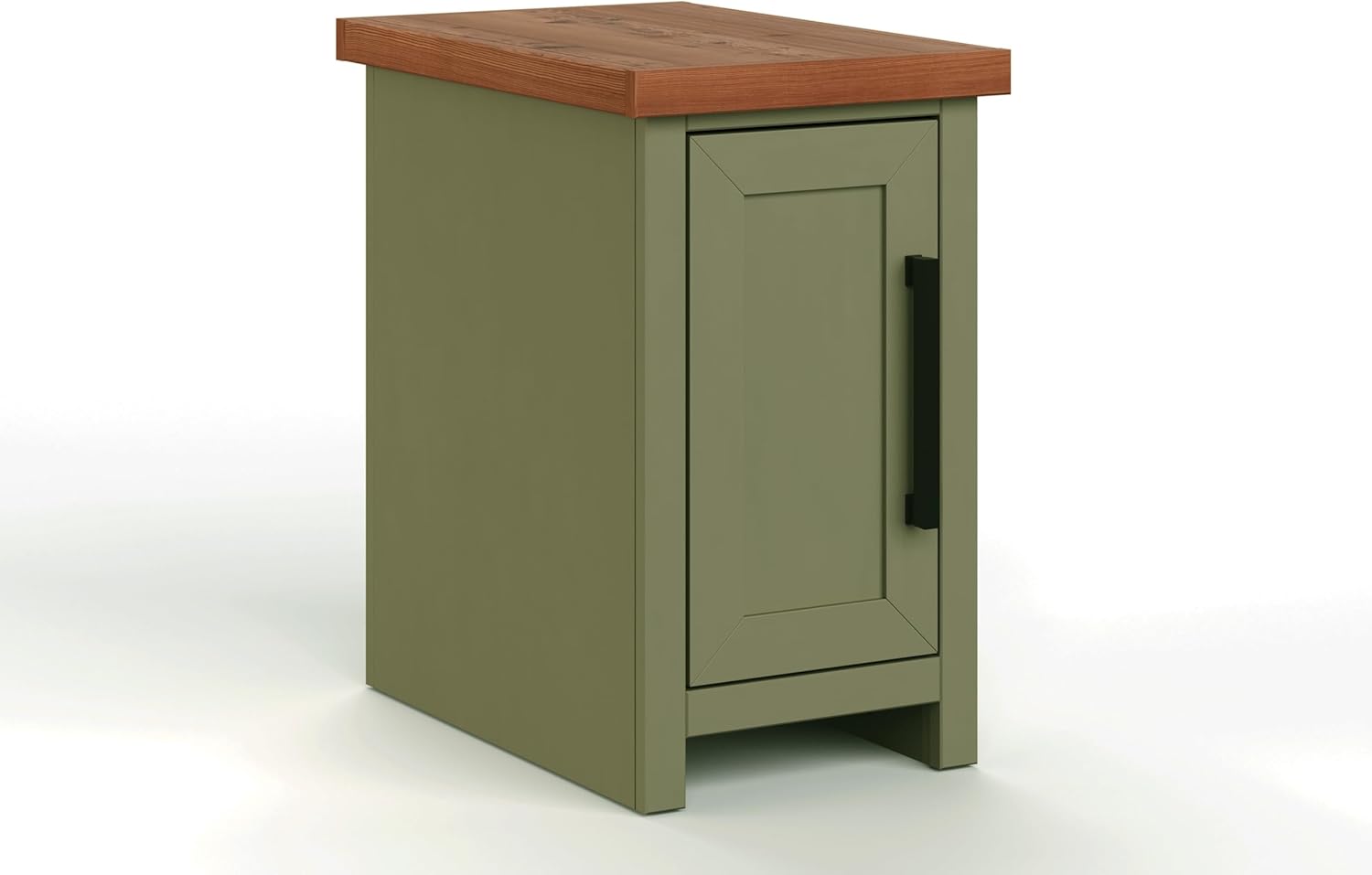 Bridgevine Home Vineyard 14 inch Chairside Table, No Assembly Required, Sage Green and Fruitwood Finish