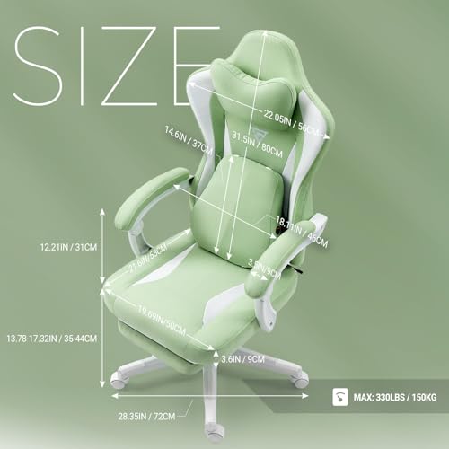 Gaming Chair PRO, Massage Gaming Chairs for Heavy People Adults, Ergonomic Reclining Office Desk Computer Chair with Footrest and Lumbar Support, Big Tall Mesh Gamer Chair with Cushion (Black)